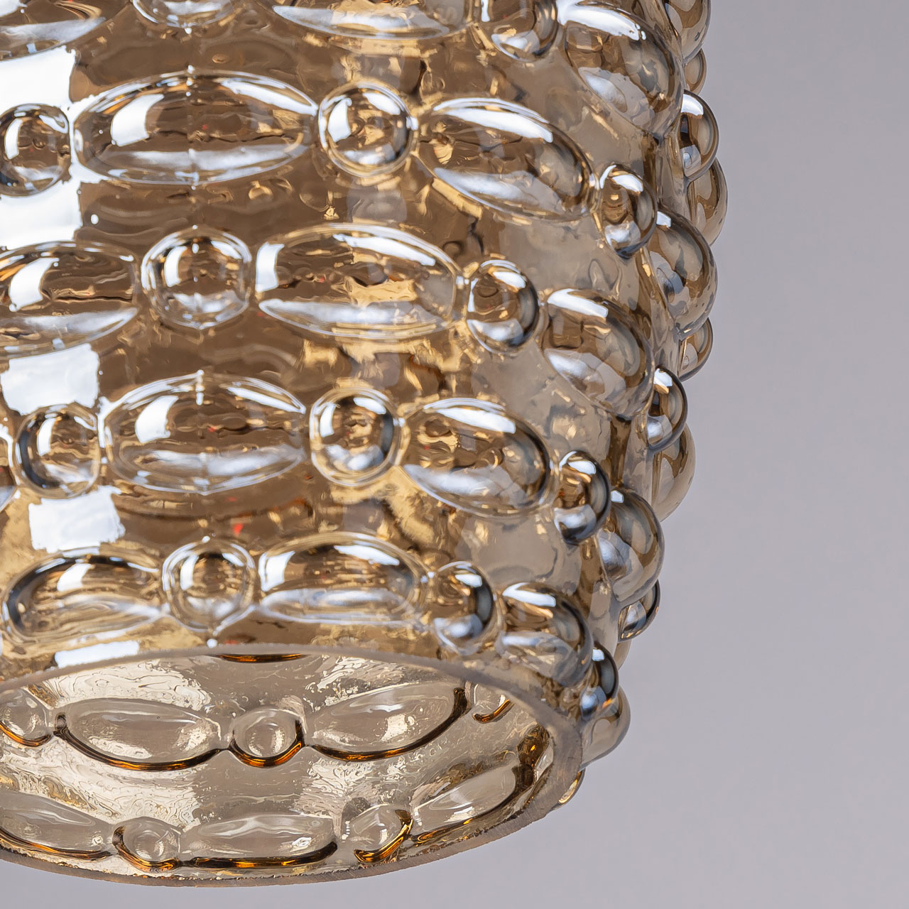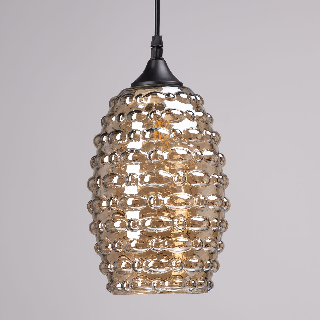 Металлическое основание окрашено в черный цвет. Плафон из фактурного стекла отлит в сложную форму. Стекло плафона гальванизировано в цвет топаз.