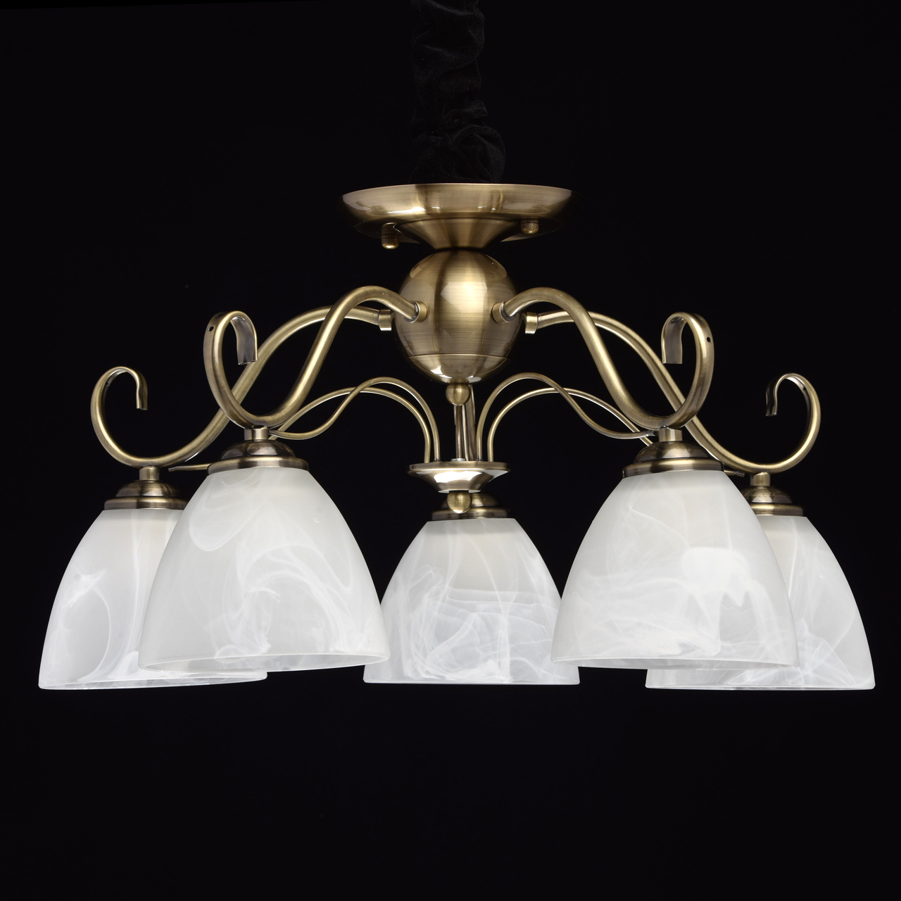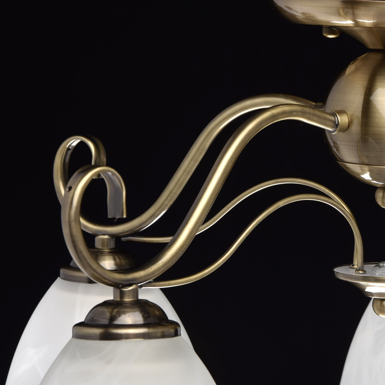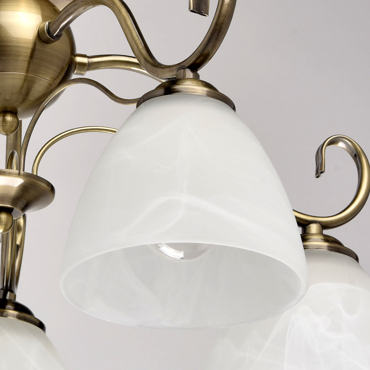 Основание: металл, гальванизирован в цвет античной бронзы.Плафоны: алебастровое стекло, отлито в форму; матирование.