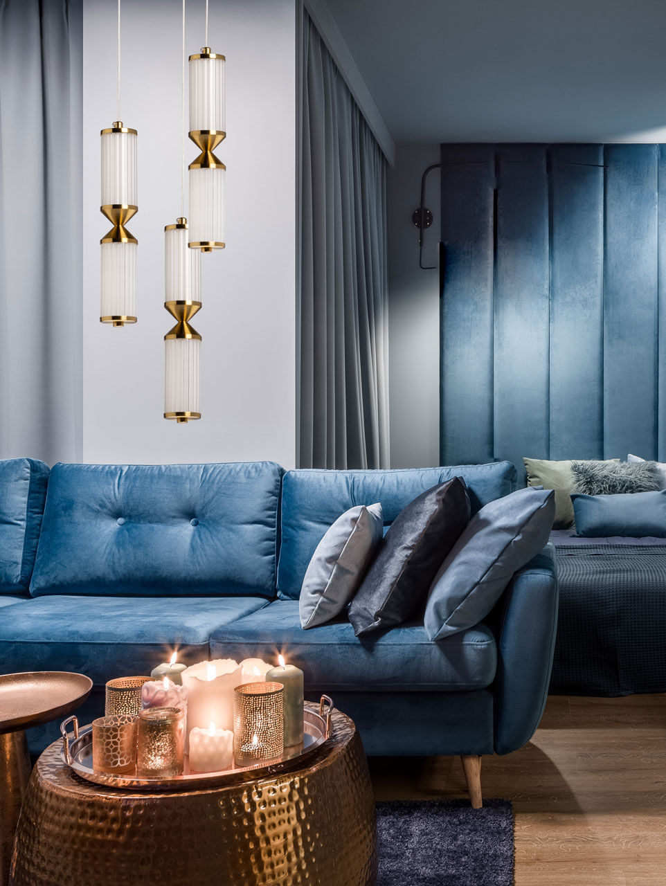 Металлическое основание подвеса гальванизировано в цвет золота. Плафоны выполнены из акрила белого цвета.