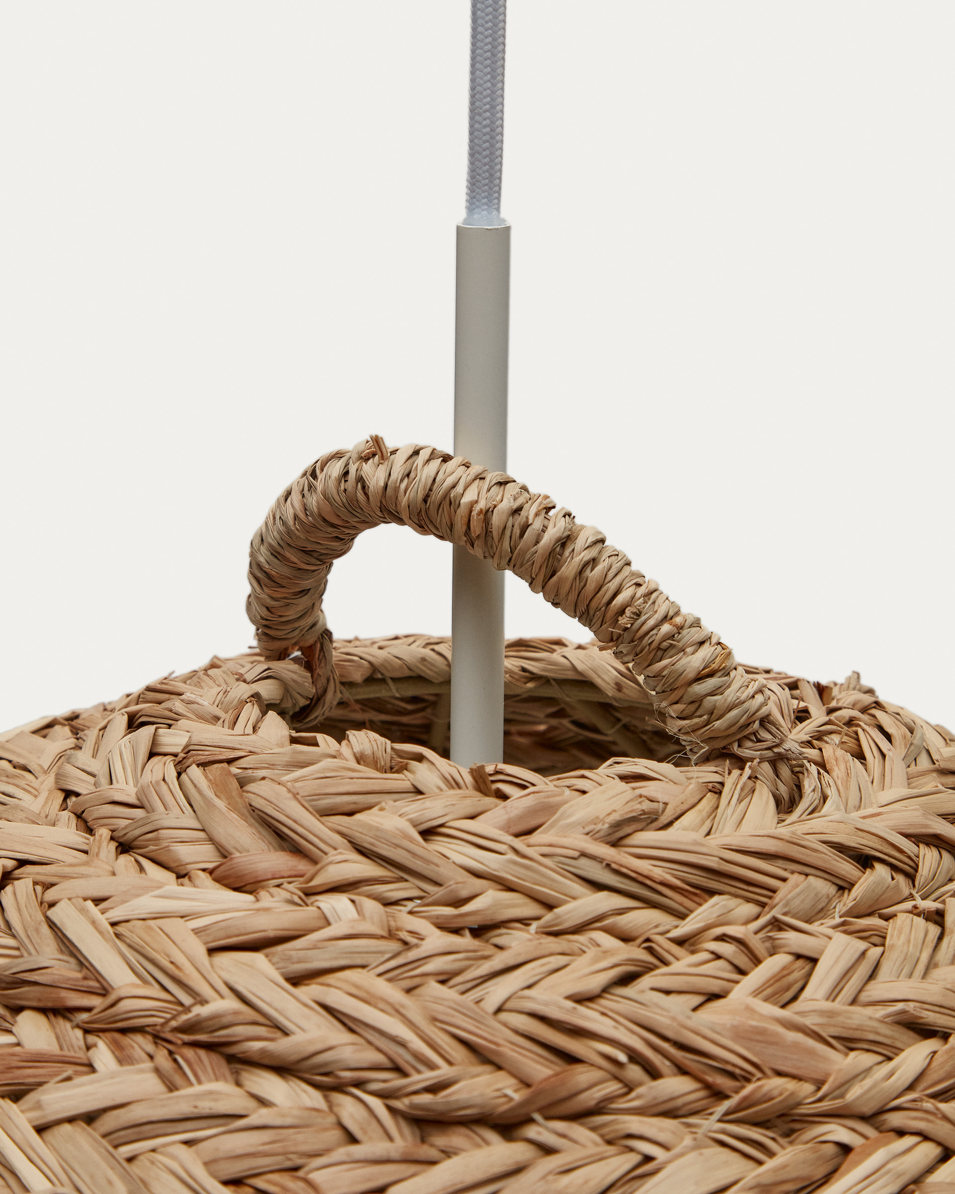 Потолочный абажур из натурального волокна с натуральной отделкой. 40 см в диаметре. Ручное плетение с использованием ремесленных техник. Натуральные материалы с уникальными тонами и текстурами, которые делают каждое изделие уникальным. Лампочка, крепления и кабели в комплект не входят, так что вы можете настроить дизайн своей лампы на 100%.