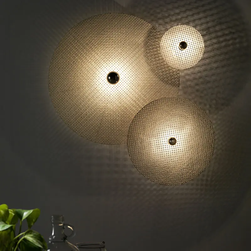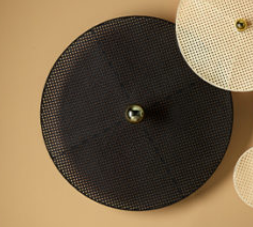 Настенное бра, выполненное из металла и ротанга в современном стиле. Состоит из металлического фиттинга размером 15 см черного цвета и рассеивающего диска из ротанга 90 см в черном цвете.