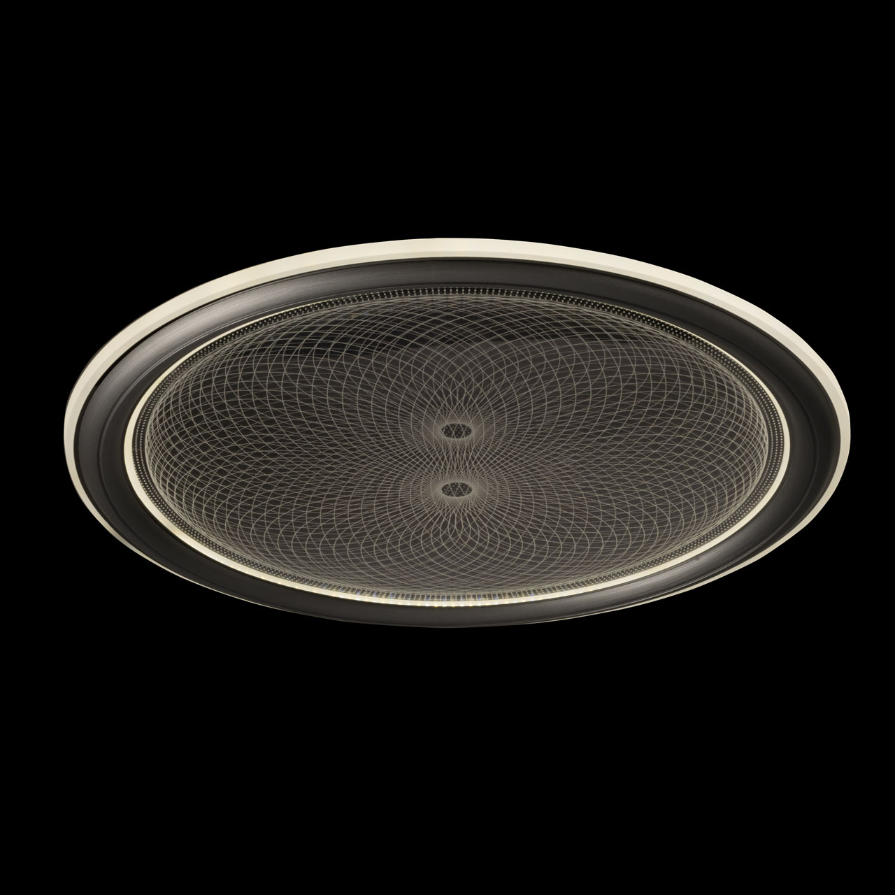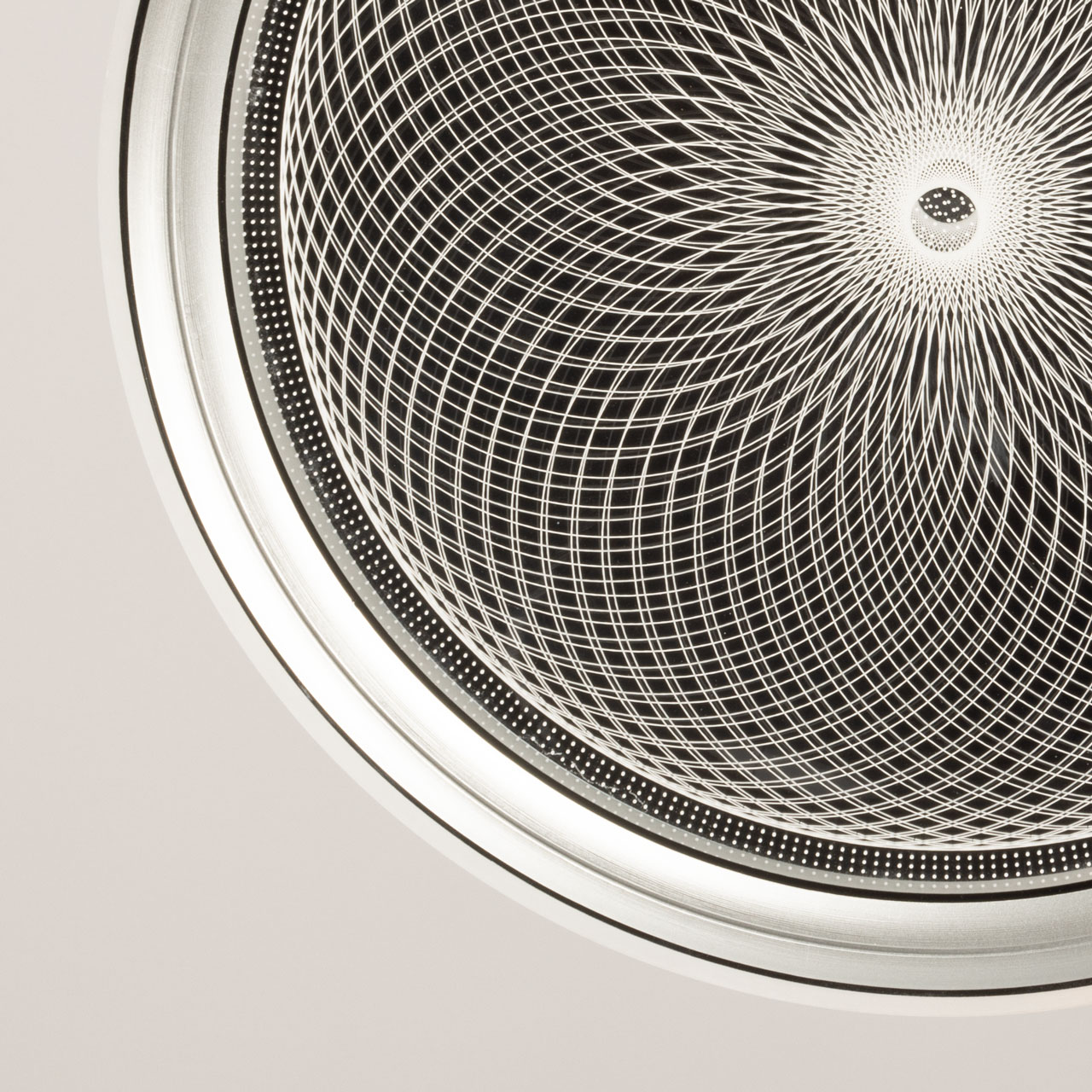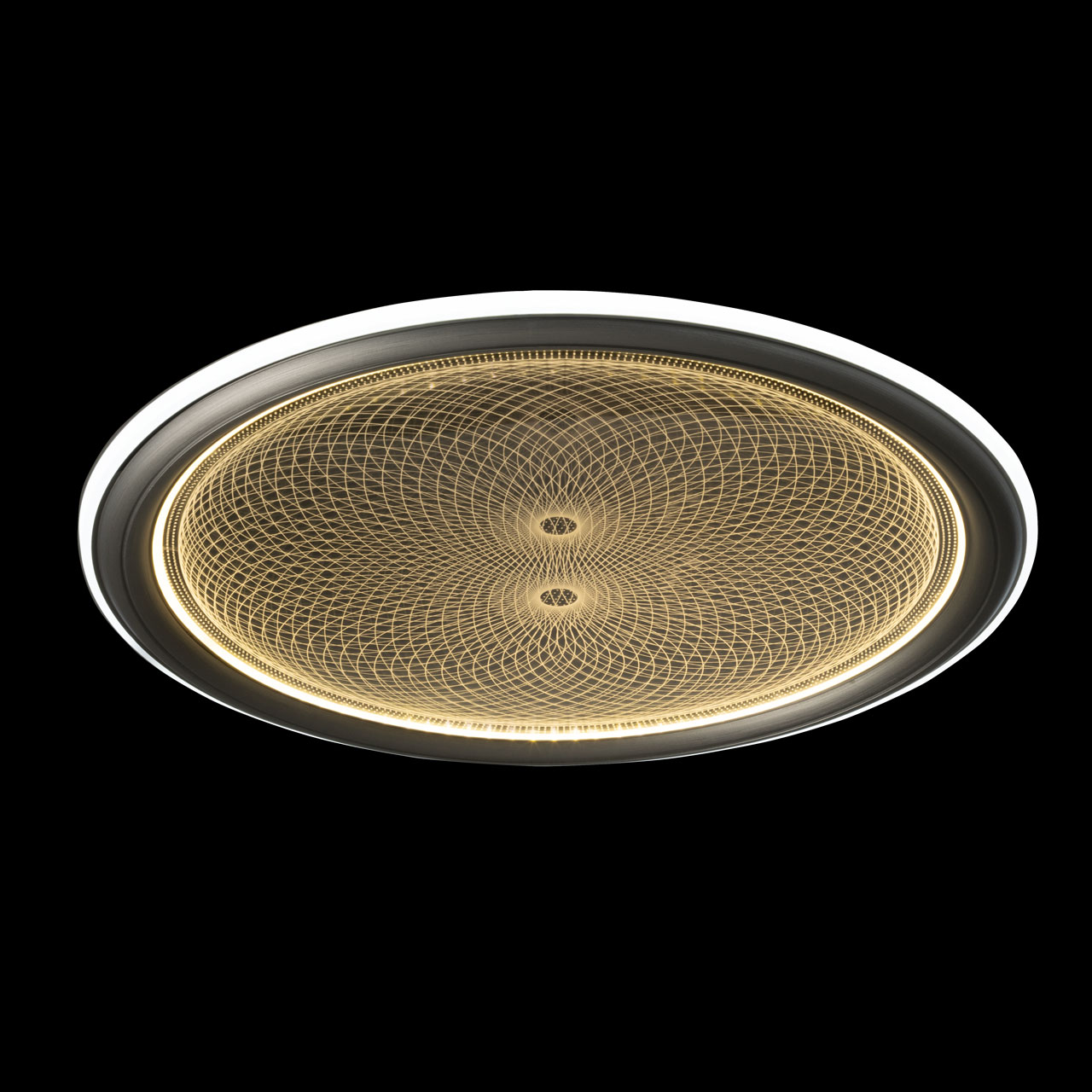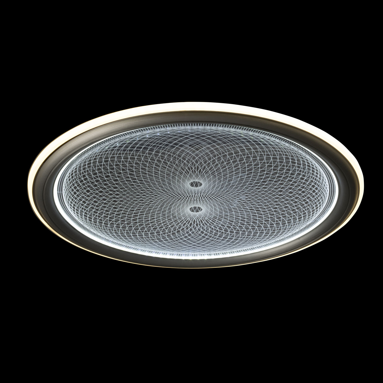 Металлическое основание светильника окрашено в белый цвет. Плафон выполнен из сплава алюминия с цинком и окрашен в цвет серебра. Светодиодные источники света закрыты белым матовым акрилом. Потолочная люстра декорирована металлической пластиной, гальванизированной в цвет хрома и прозрачным акрилом с 3D-эффектом.
