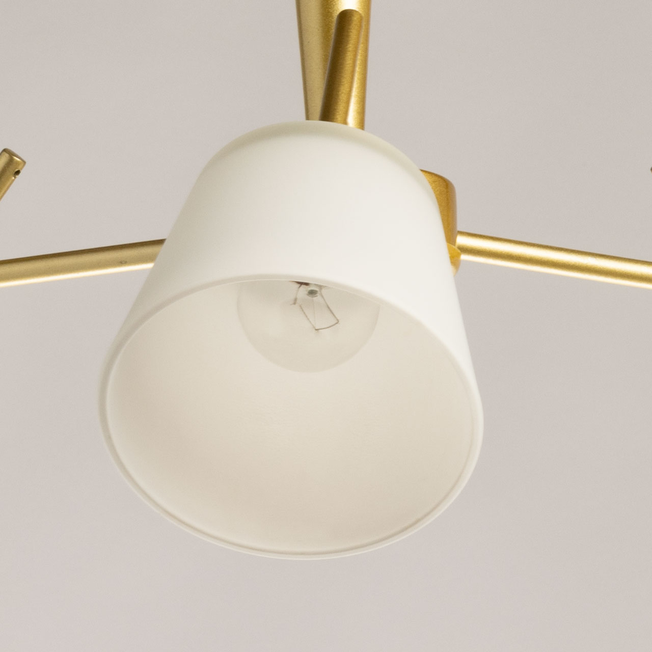 Основание светильника выполнено из металла и окрашено в цвет золота. Белые плафоны отлиты в форму и матированы