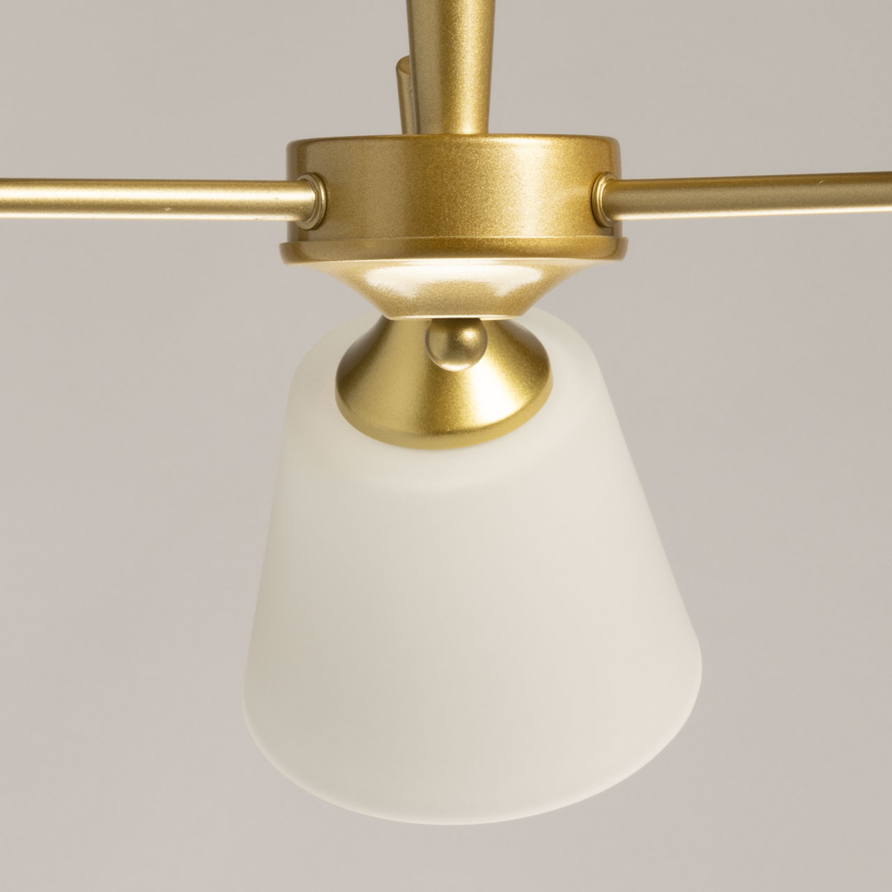Основание светильника выполнено из металла и окрашено в цвет золота. Белые плафоны отлиты в форму и матированы