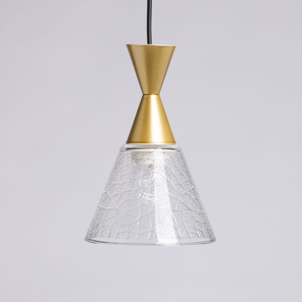 Металлическое основание подвесной люстры окрашено в черный цвет. Отдельные элементы основания и декора окрашены в цвет перламутрового золота. Светильник декорирован матовым фактурным плафоном с имитацией кожи рептилий.