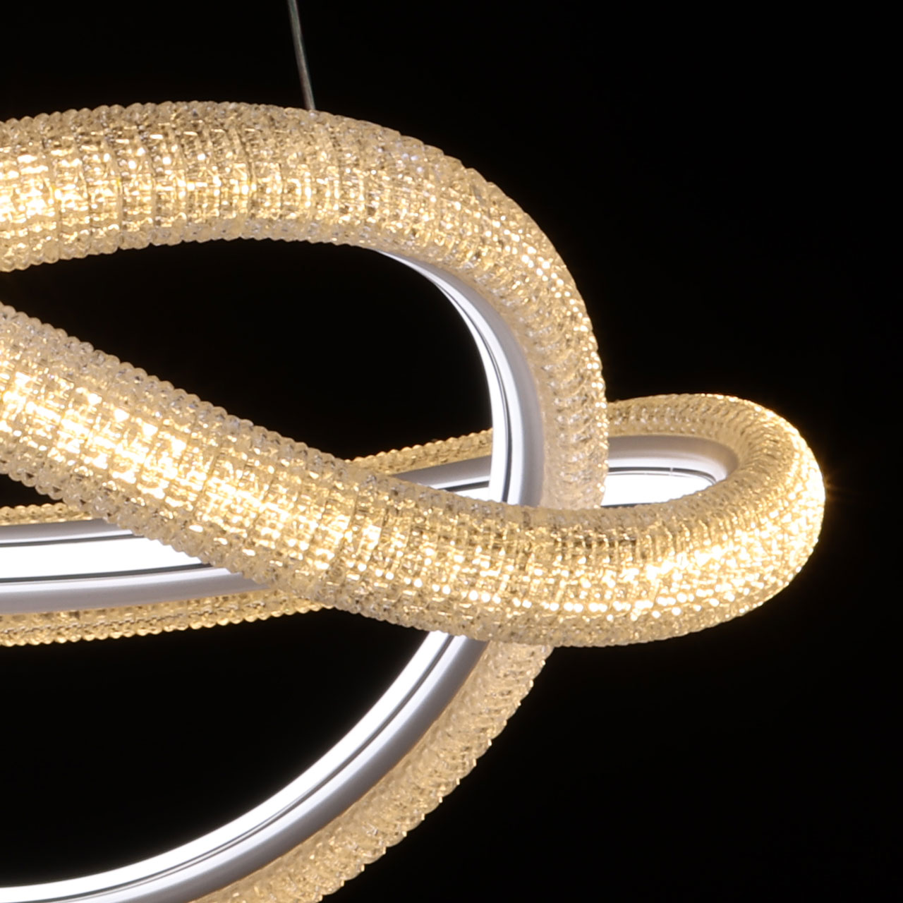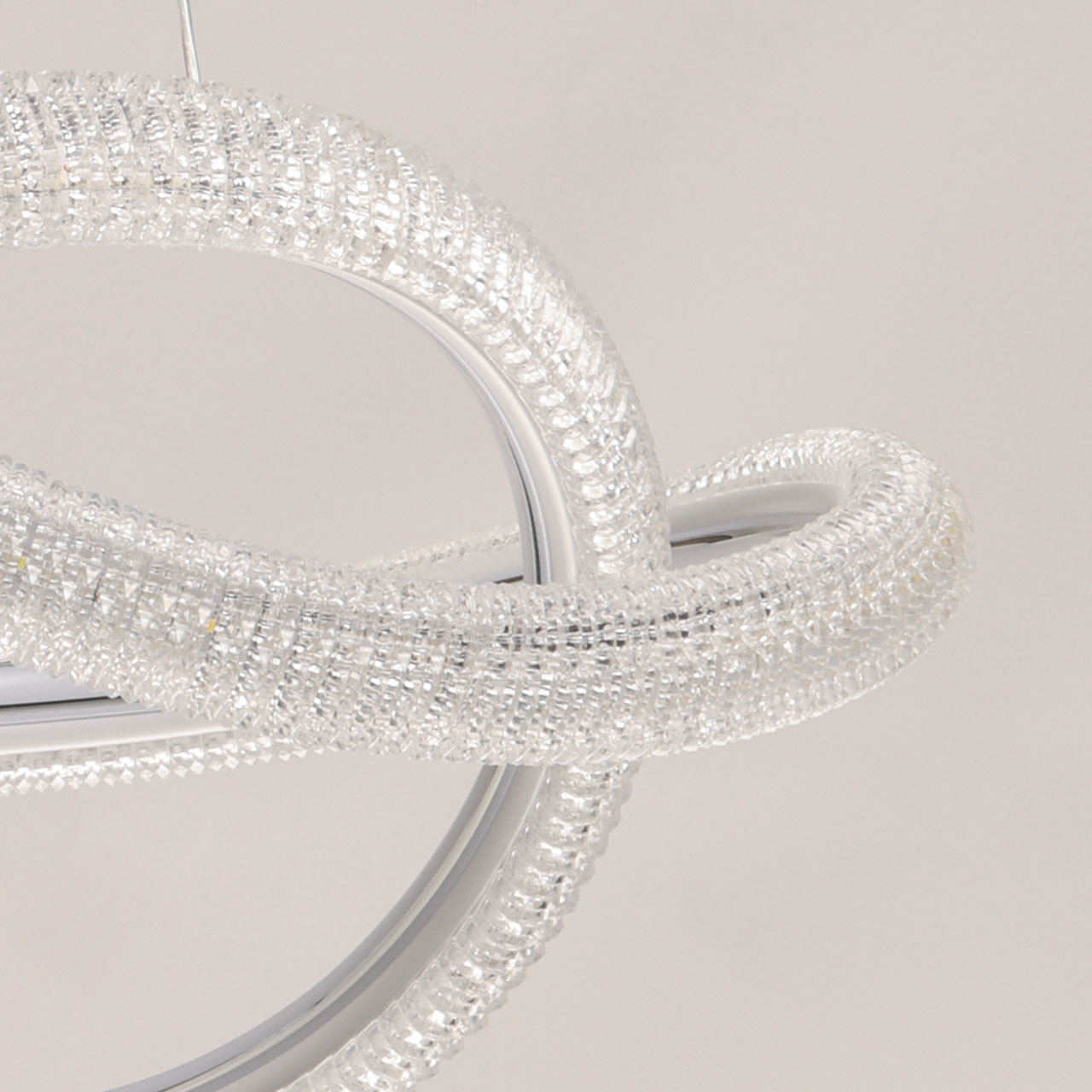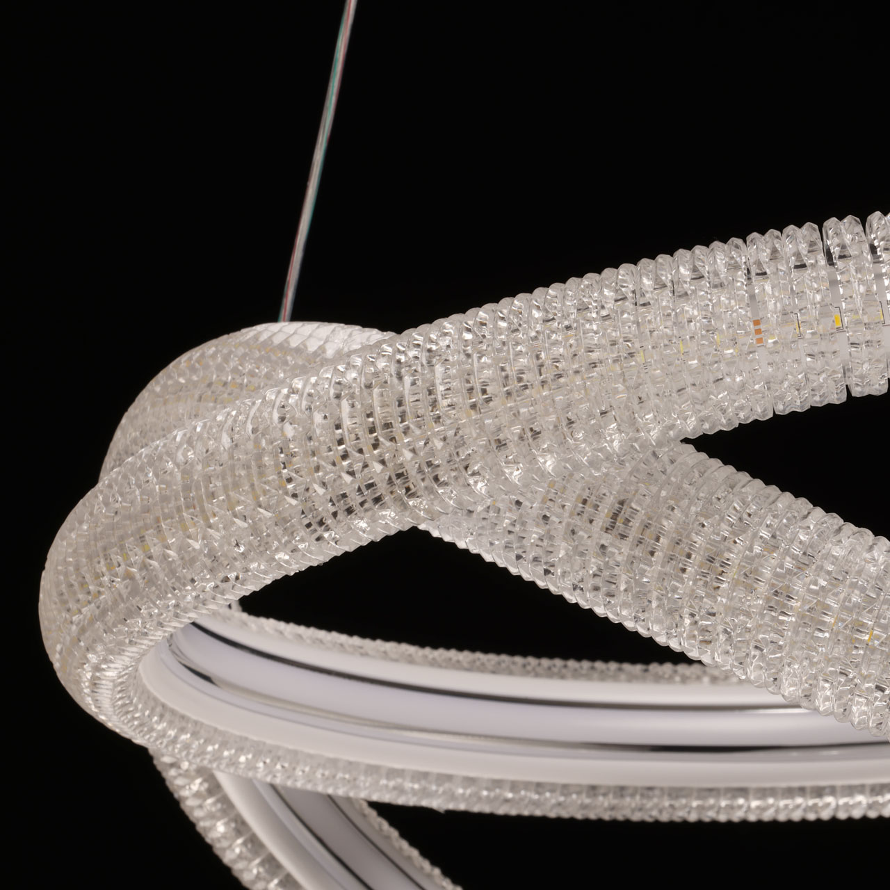 Металлическое основание светильника окрашено в белый цвет. Светодиодные источники света закрыты прозрачным фактурным акрилом.