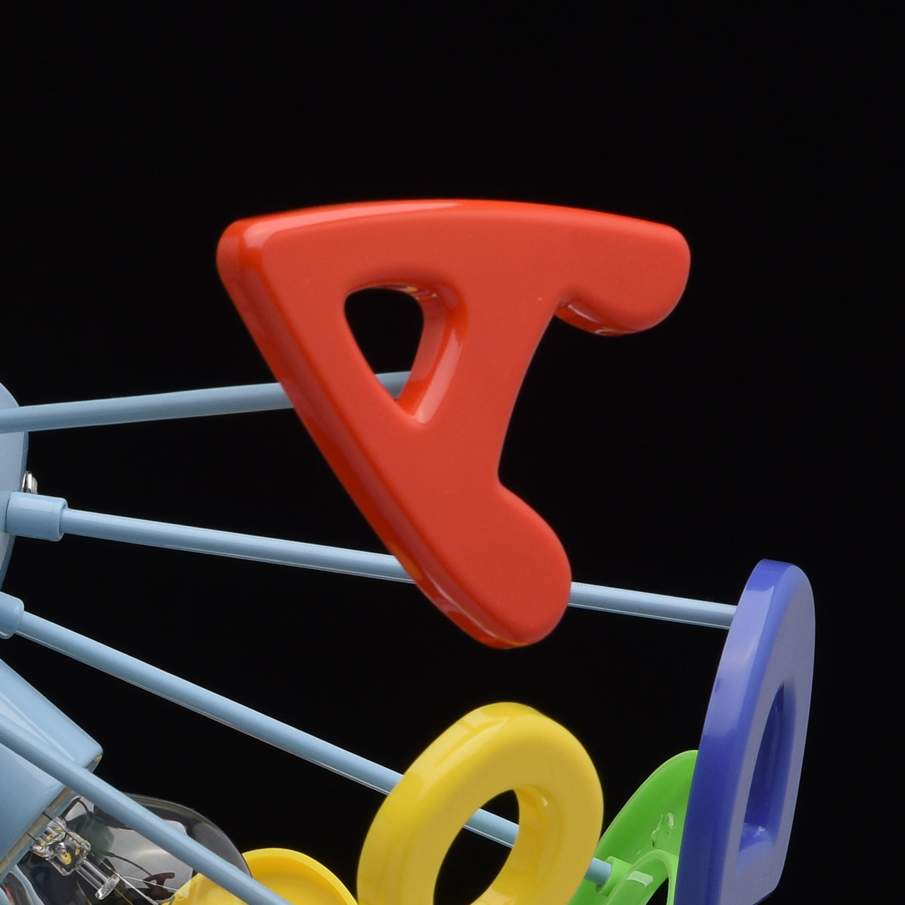 Основание светильника выполнено из сплава металла и окрашено в синий цвет. Светильник декорирован латинскими буквами из высококачественного акрила, окрашенного в разные цвета.