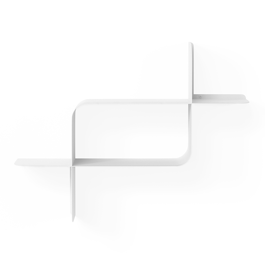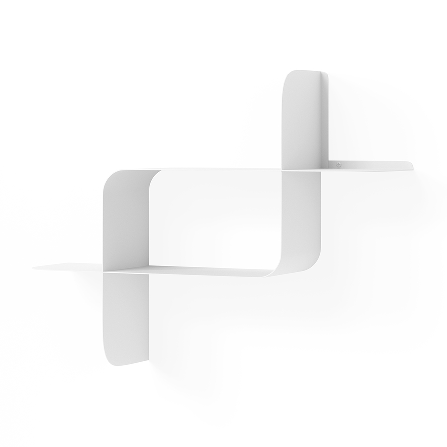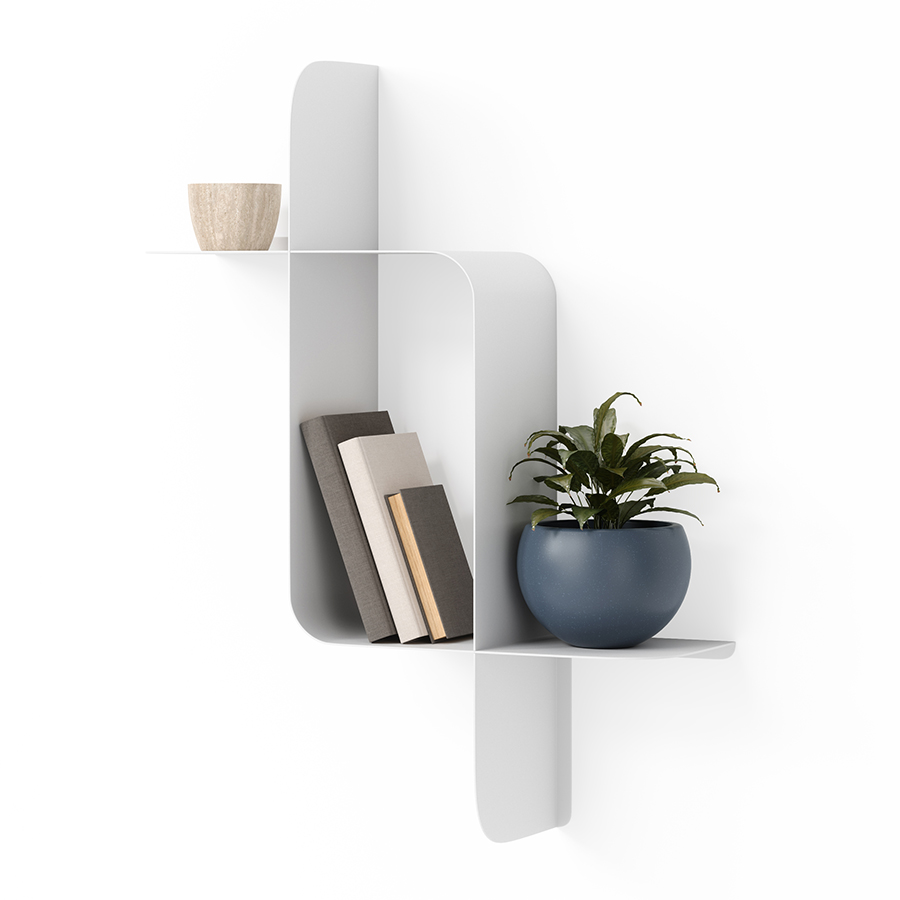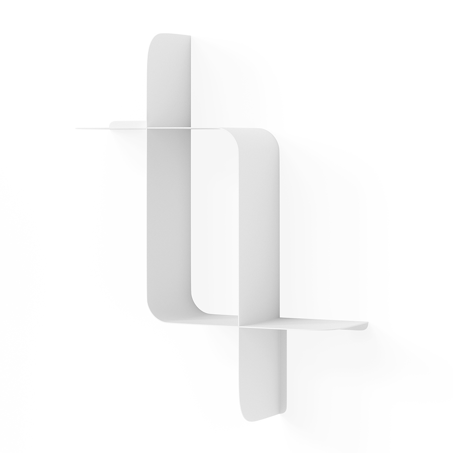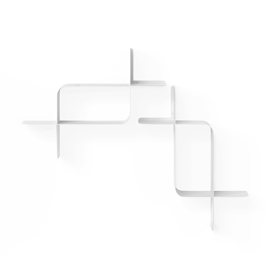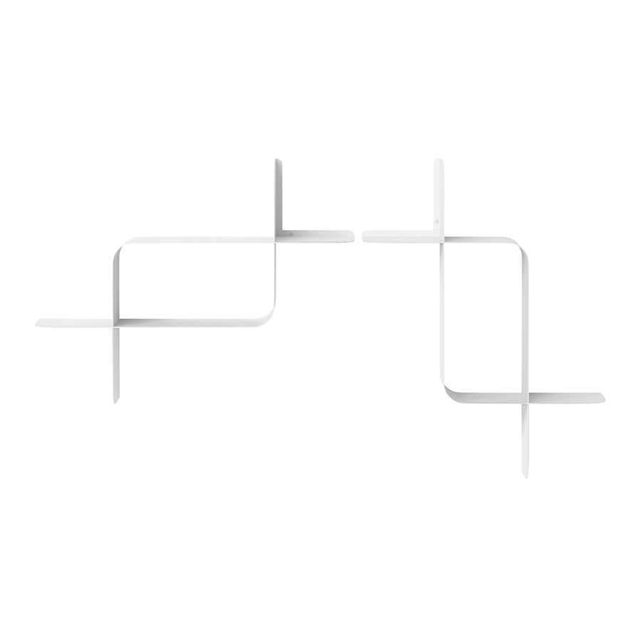 Набор из двух металлических настенных полок Montage идеально подойдет для компактного хранения вещей в любой из комнат и станет стильным акцентом интерьера. За счет уникальной изогнутой формы образуется восемь поверхностей, которые можно занять под книгами, декором, комнатными растениями. В зависимости от особенностей интерьера, конструкцию можно крепить на стене как горизонтально, так и вертикально. Предметы отлично интегрируются в различными стилевыми решениями. Полки подходят для прихожей, гостиной, спальни, кабинета, офиса.