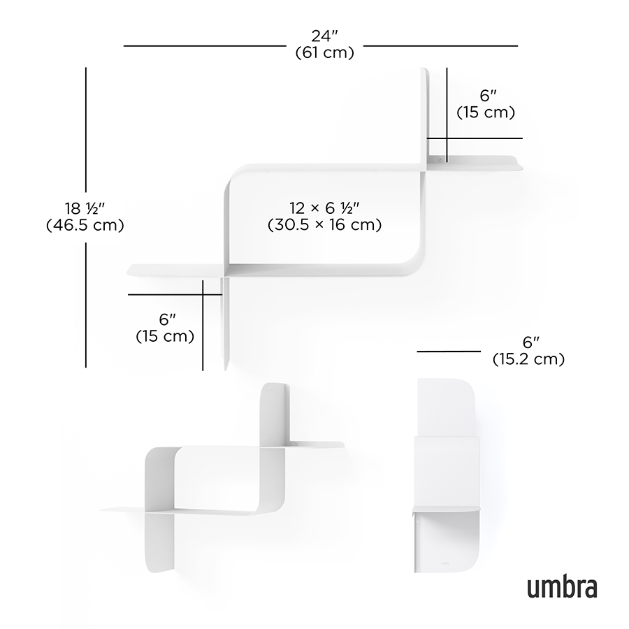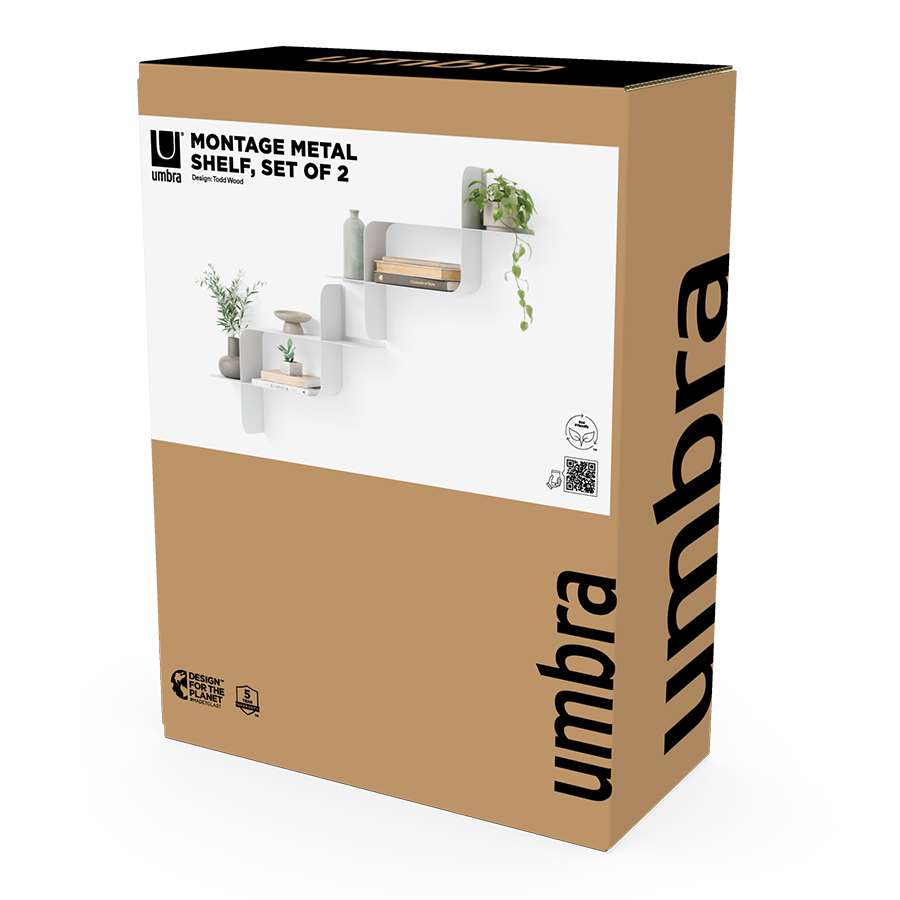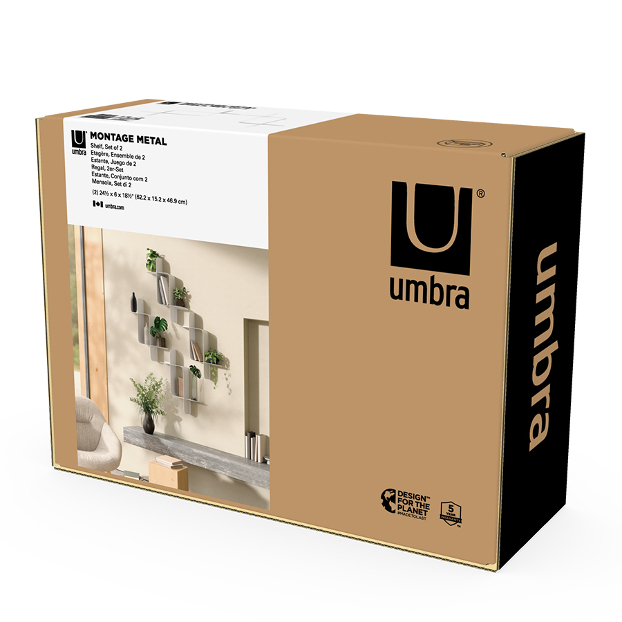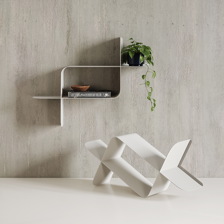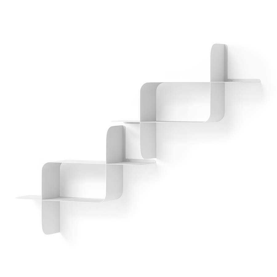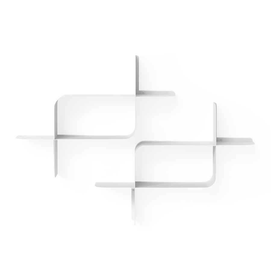 Набор из двух металлических настенных полок Montage идеально подойдет для компактного хранения вещей в любой из комнат и станет стильным акцентом интерьера. За счет уникальной изогнутой формы образуется восемь поверхностей, которые можно занять под книгами, декором, комнатными растениями. В зависимости от особенностей интерьера, конструкцию можно крепить на стене как горизонтально, так и вертикально. Предметы отлично интегрируются в различными стилевыми решениями. Полки подходят для прихожей, гостиной, спальни, кабинета, офиса.