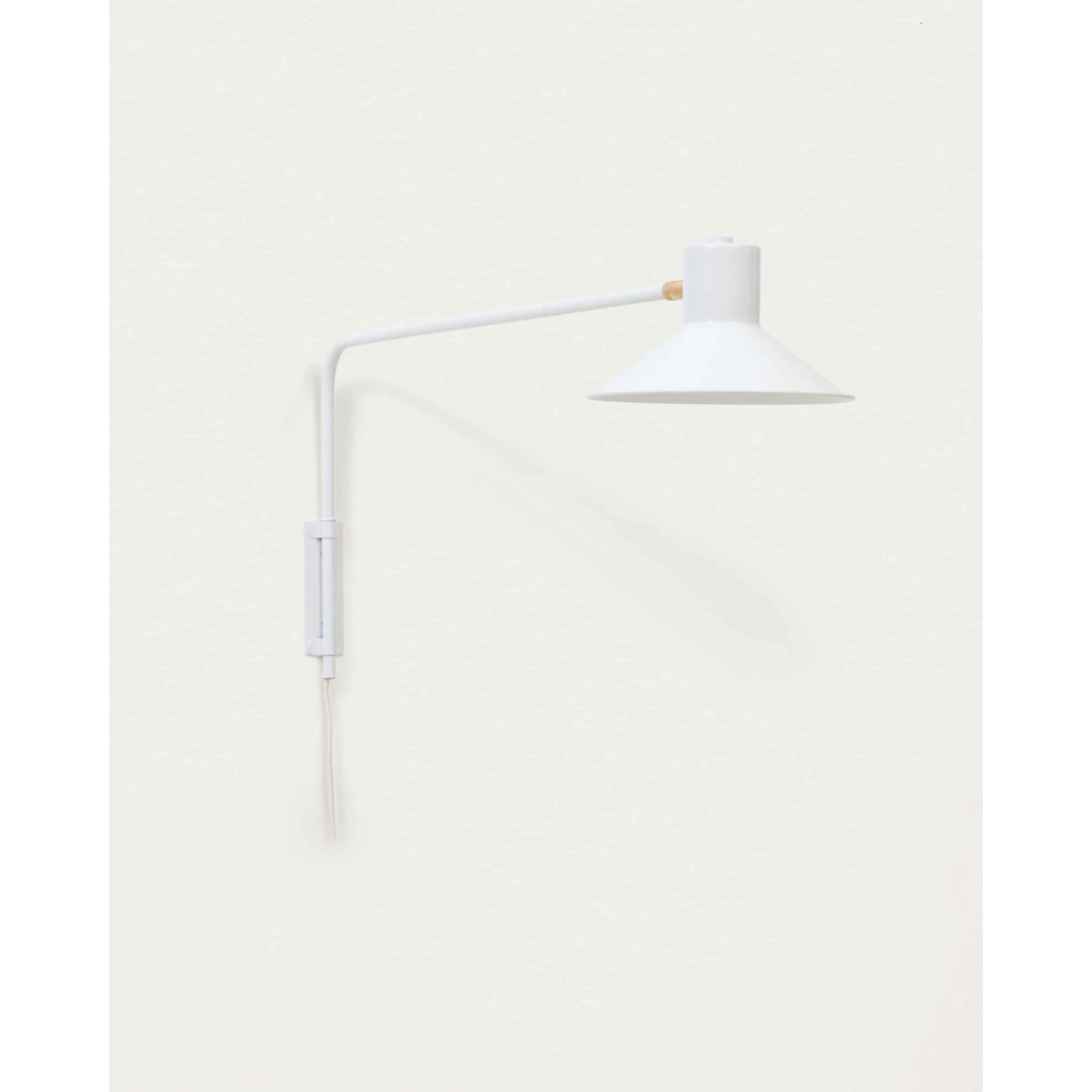 Шарнирный настенный светильник с кронштейном, стальным экраном, окрашенным в белый цвет, и небольшой латунной деталью. Идеальный элемент дизайна для освещения всех типов пространств и вписывания в любую обстановку.