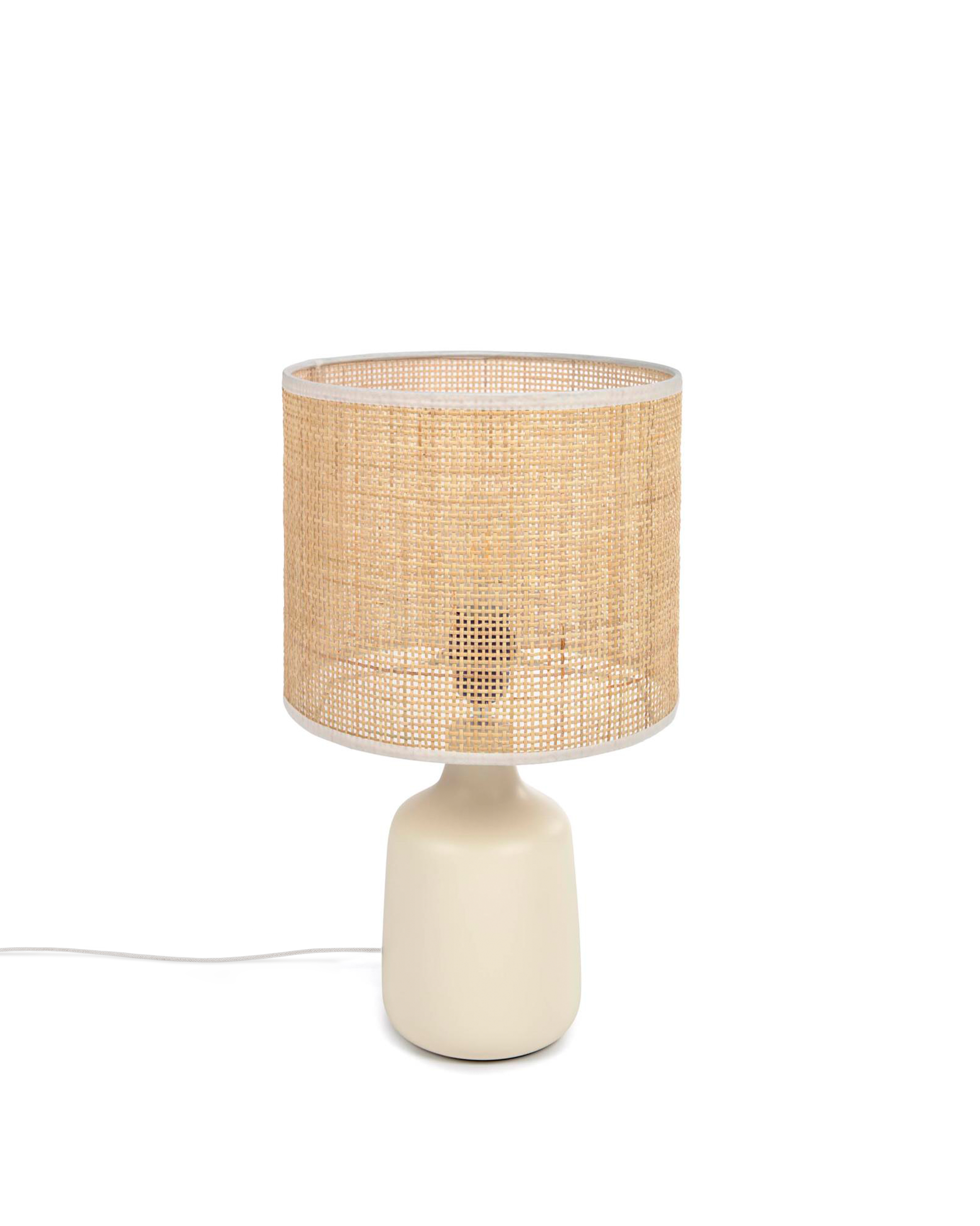 Настольная лампа Erna от фабрики La Forma (ex Julia Grup) – плетеный абажур из бамбука на керамической подставке.