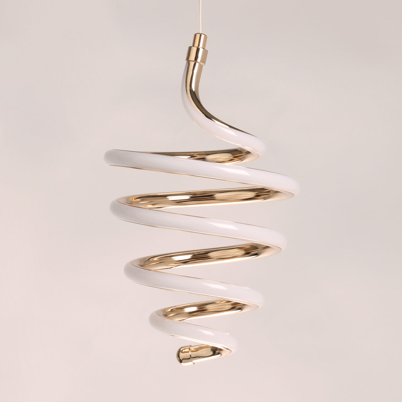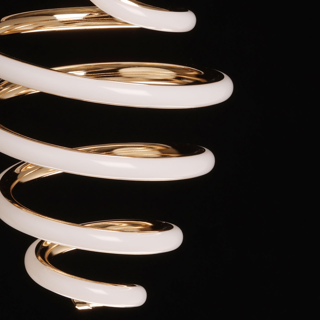 Металлическая потолочная чаша окрашена в цвет золота. Корпус плафона выполнен из сплава алюминия с цинком и окрашен в цвет основания. Светодиодный источник света закрыт белым матовым силиконом.