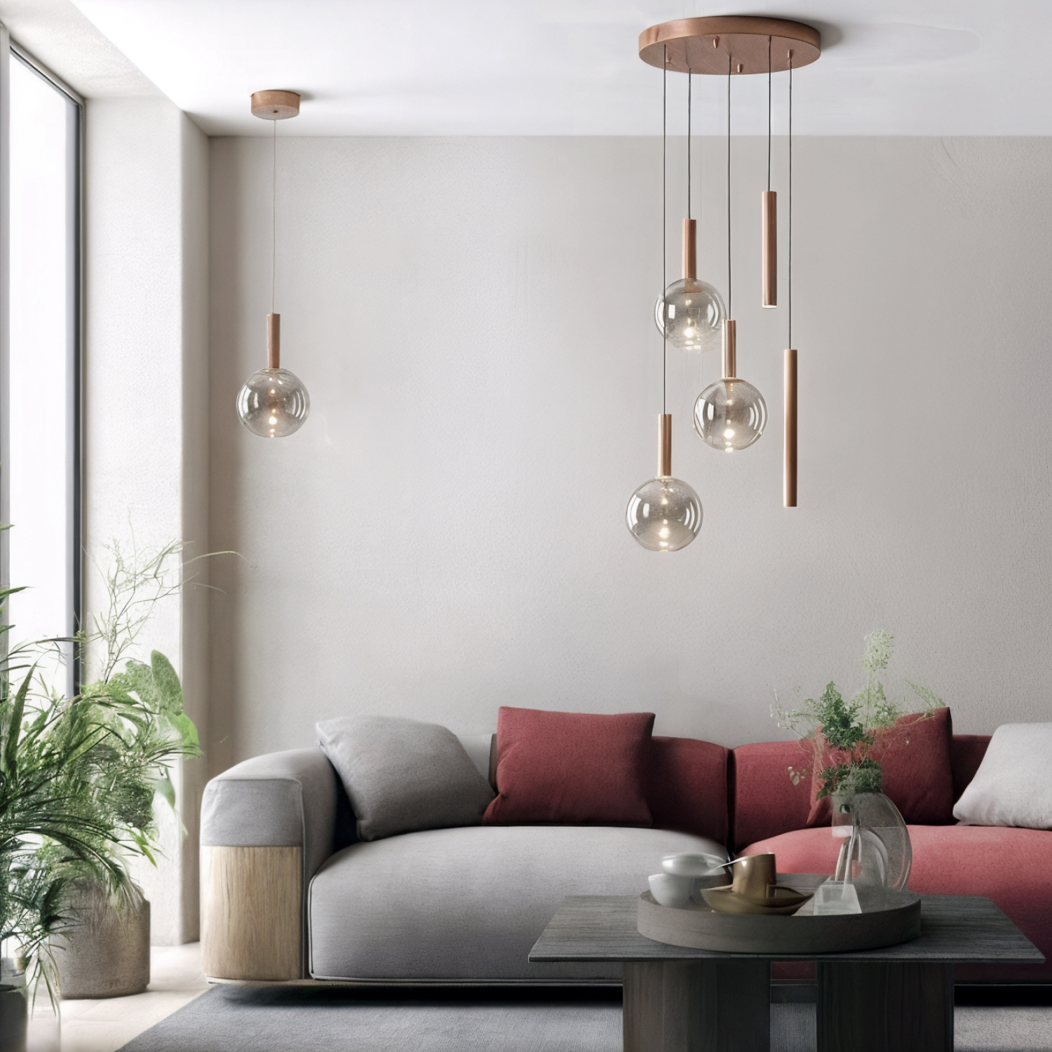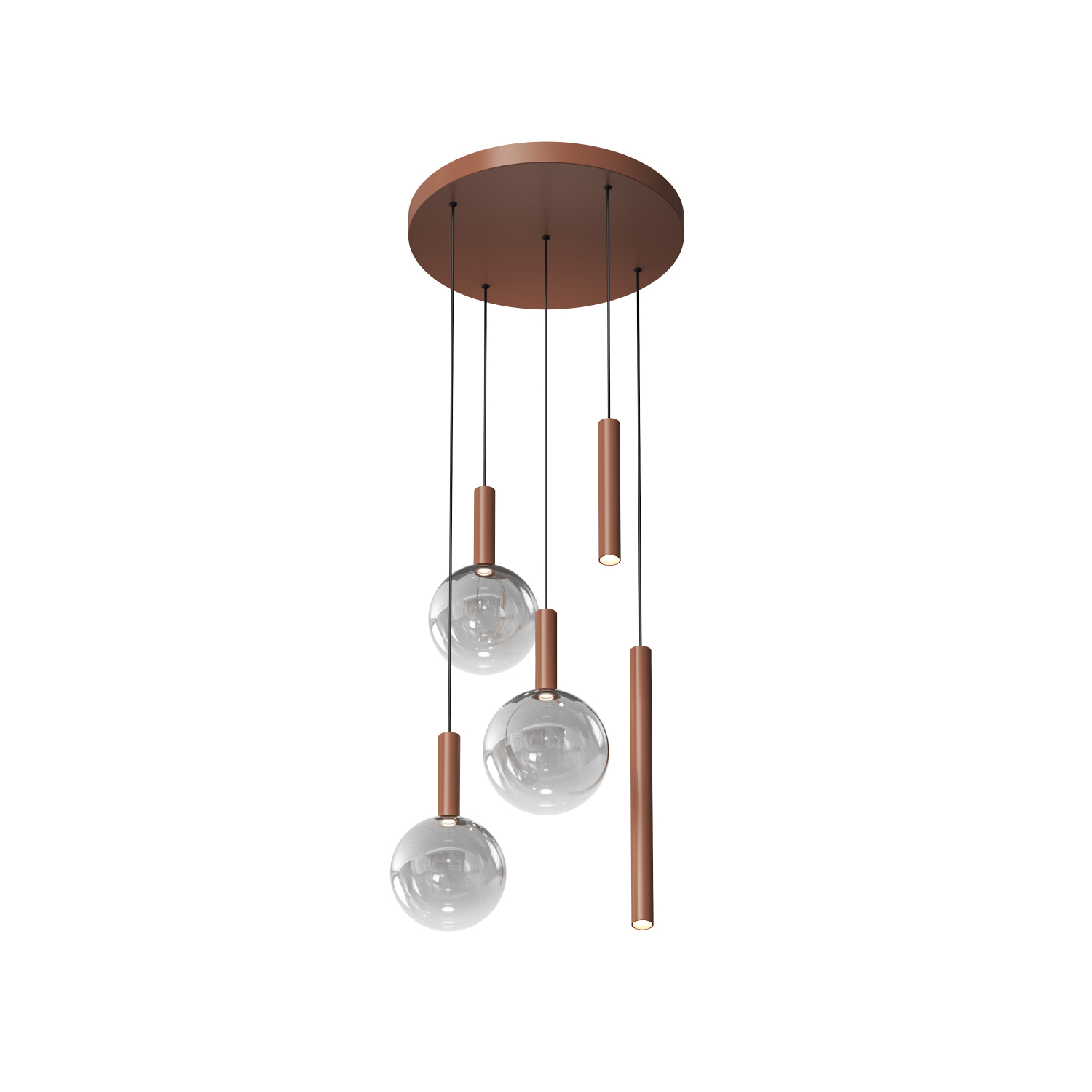 Романтичные светильники с шарообразными плафонами из дымчатого стекла, напоминающими выдувание мыльных пузырей. Полупрозрачное стекло дымчатого серого оттенка и элементы с медным покрытием придают интерьеру стиль и благородство, а тёплое свечение создаёт атмосферу уюта. Срок гарантии 3 года.