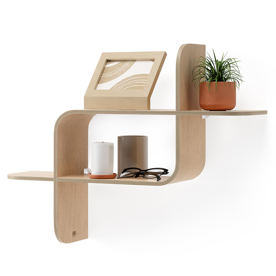 Полка Montage – великолепное сочетание современного дизайна и натуральных материалов. За счет уникальной изогнутой формы образуется четыре поверхности, которые можно задействовать под книги, декор, комнатные растения и прочее. В зависимости от особенностей интерьера, конструкцию можно крепить на стене как горизонтально, так и вертикально. Мебель из дерева наполняет пространство природным теплом и отлично интегрируется в различные стилевые решения. Полка подходит для прихожей, гостиной, спальни, кабинета, офиса.