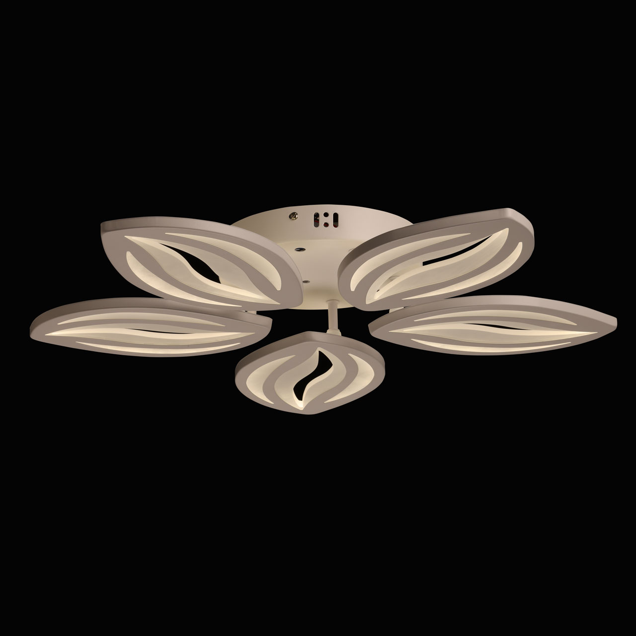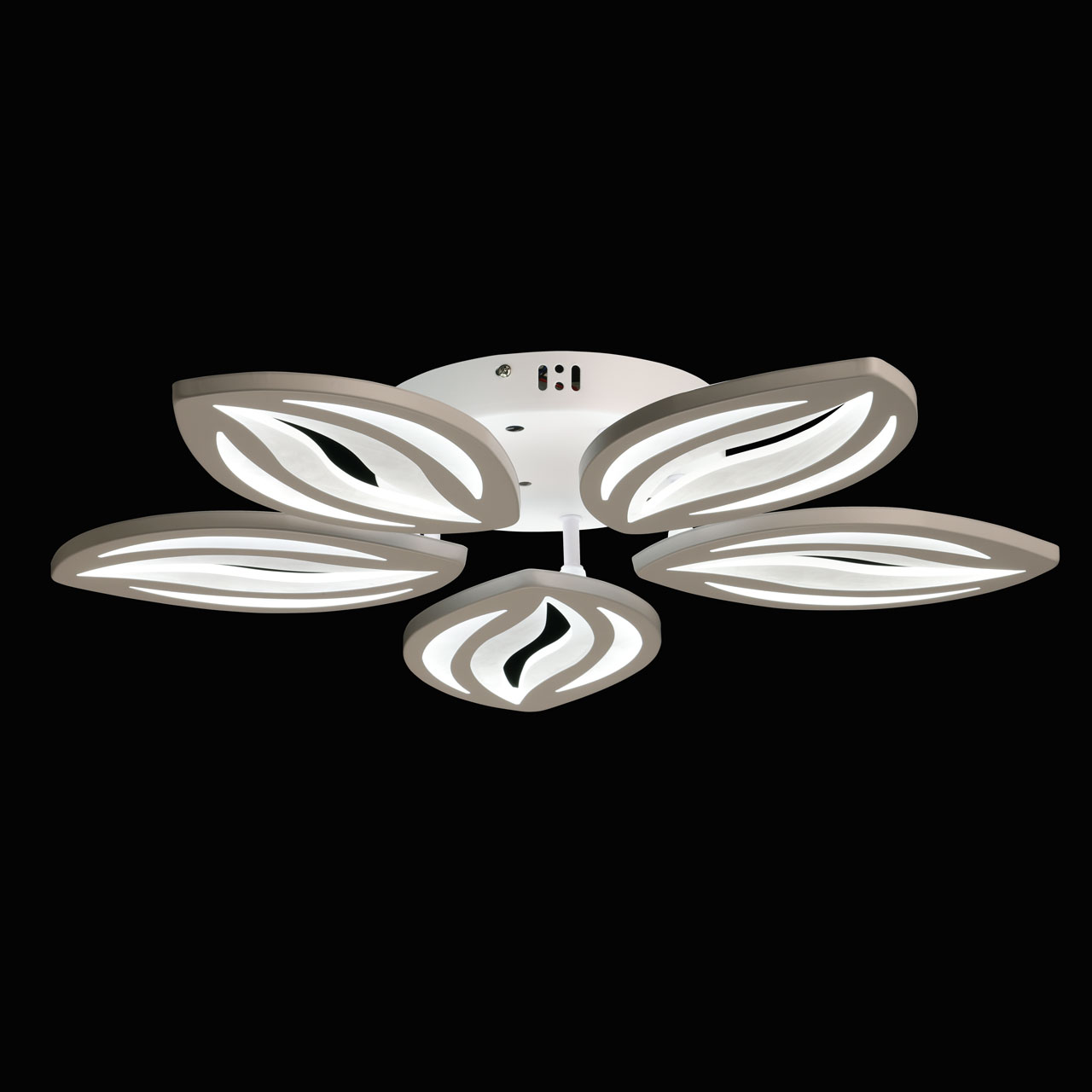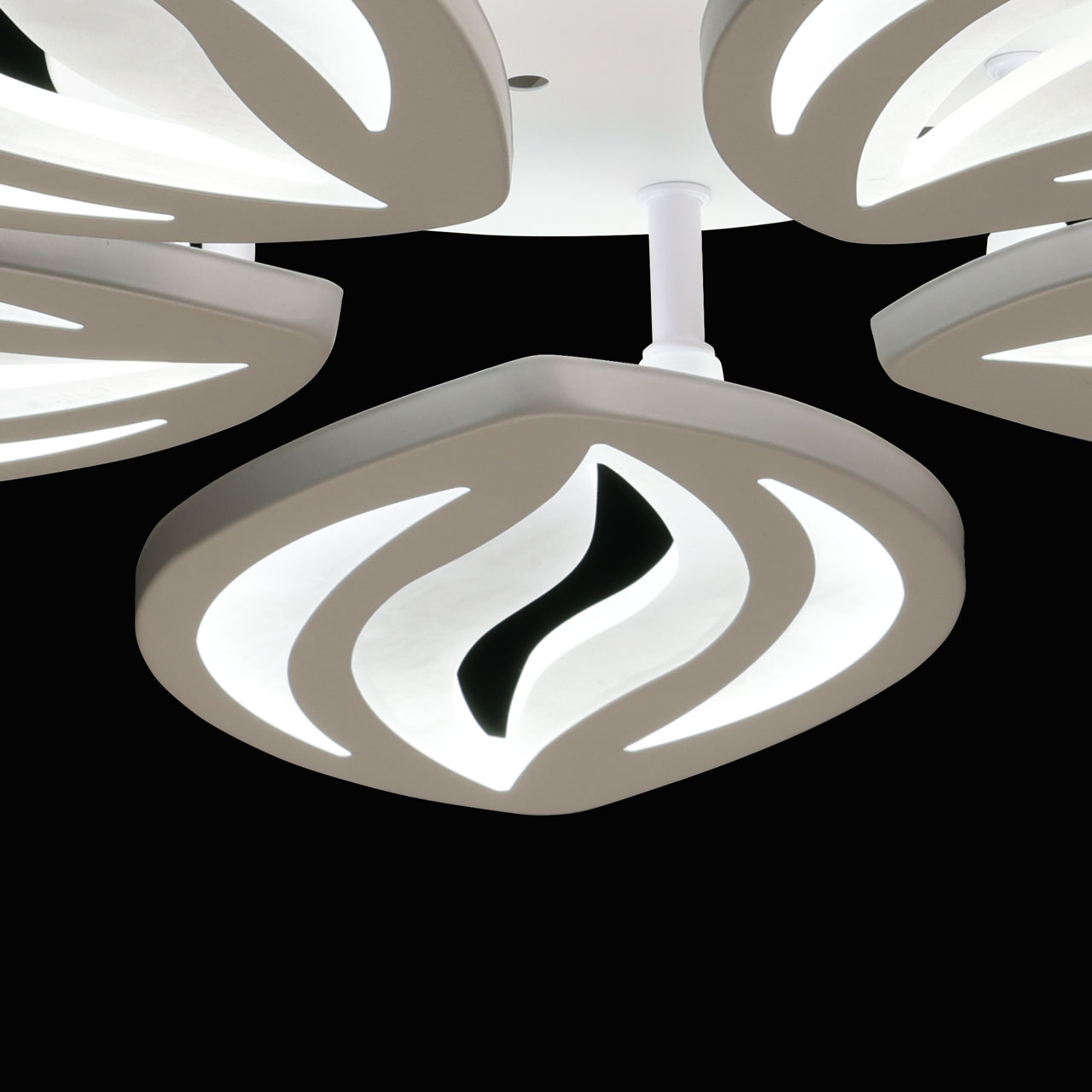 Металлическое основание потолочной люстры окрашено в белый цвет. Корпус плафона выполнен из сплава алюминия с цинком и окрашен в цвет основания. Светодиодный источник света закрыт матовым акрилом.