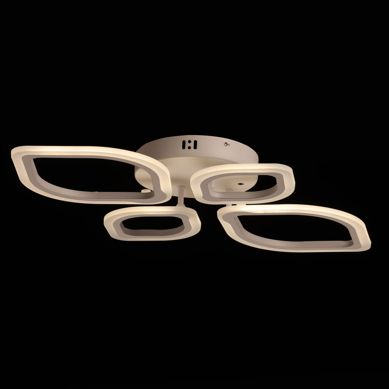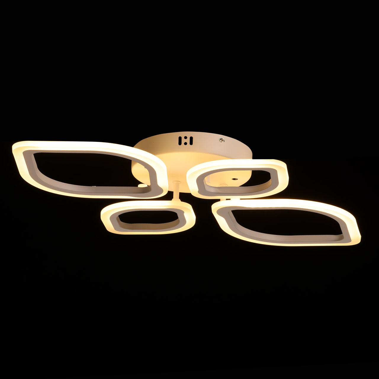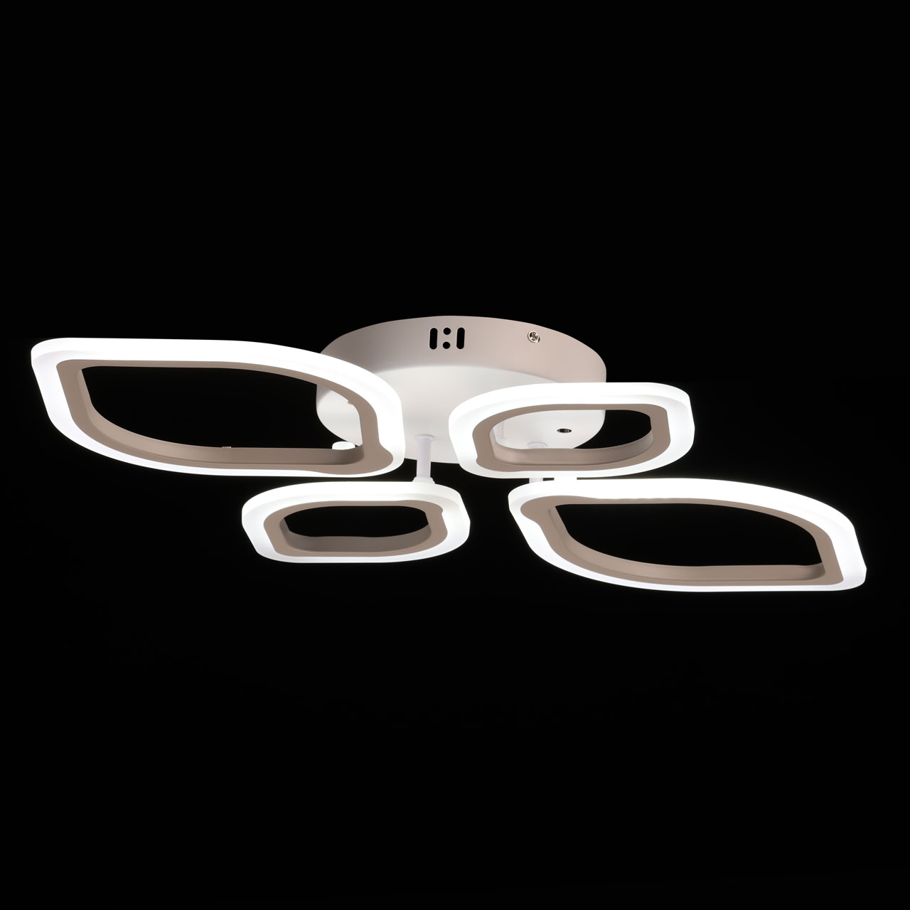 Металлическое основание потолочной люстры окрашено в белый цвет. Корпус плафона выполнен из сплава алюминия с цинком и окрашен в цвет основания. Светодиодный источник света закрыт матовым акрилом.