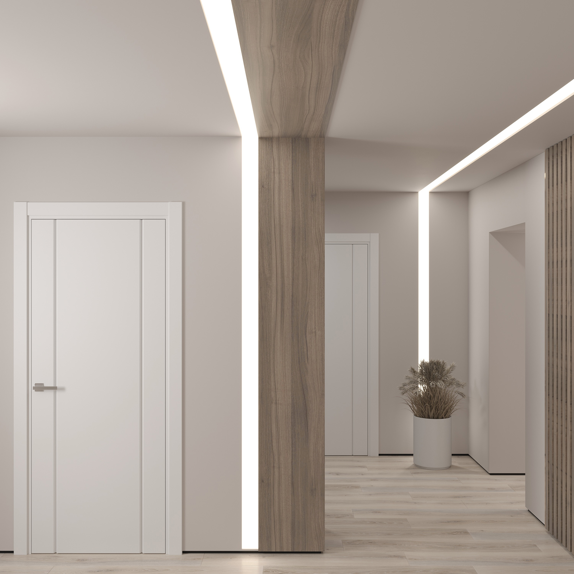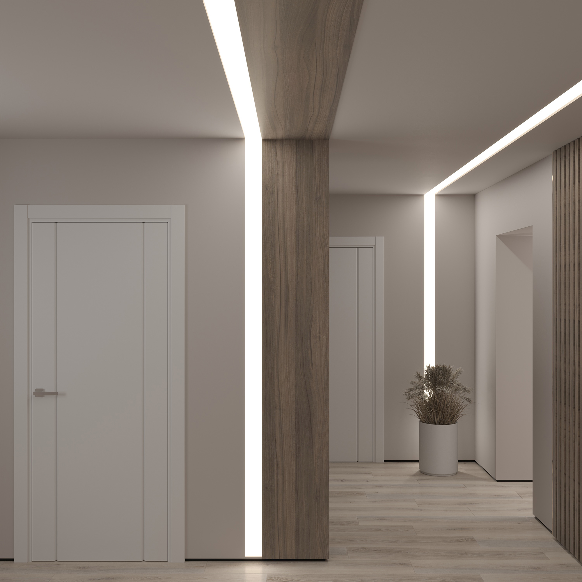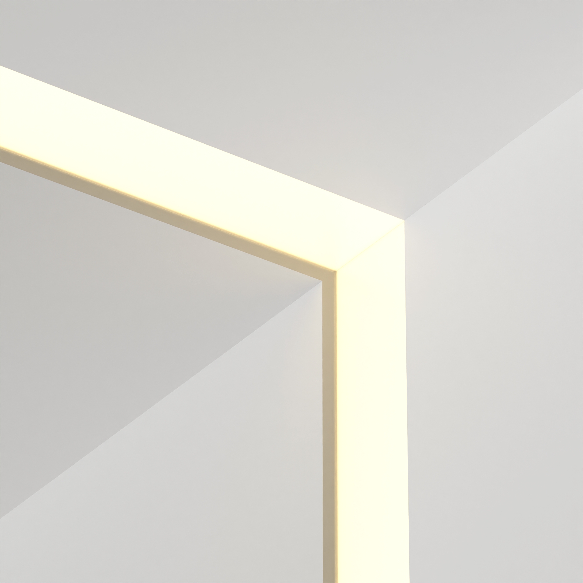 Соединительный элемент (угол 90 стена/стена, стена/потолок) встраиваемой профильной гипсовой системы освещения прямого выхода света SABER 100 для установки в потолках и стенах из гипсокартона.