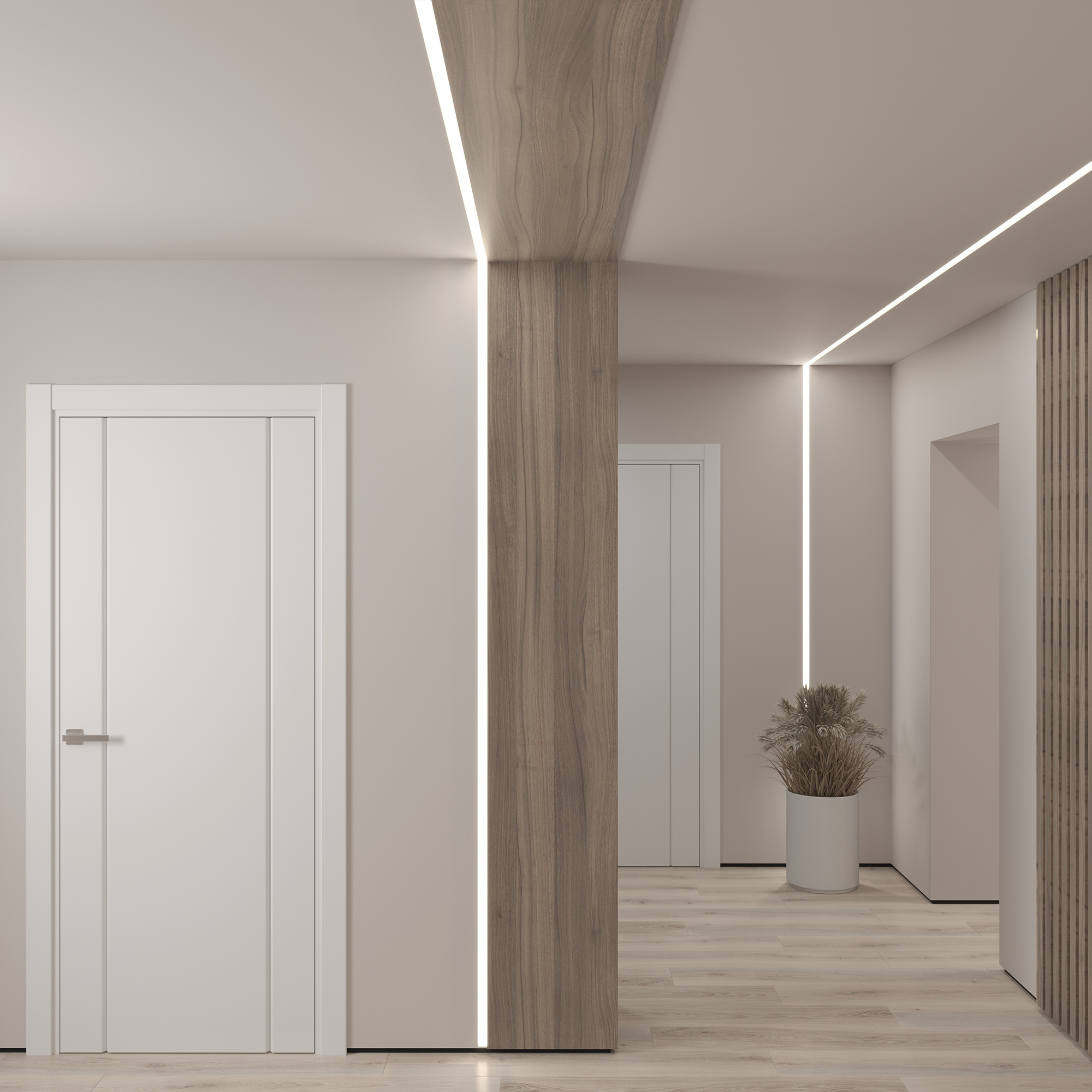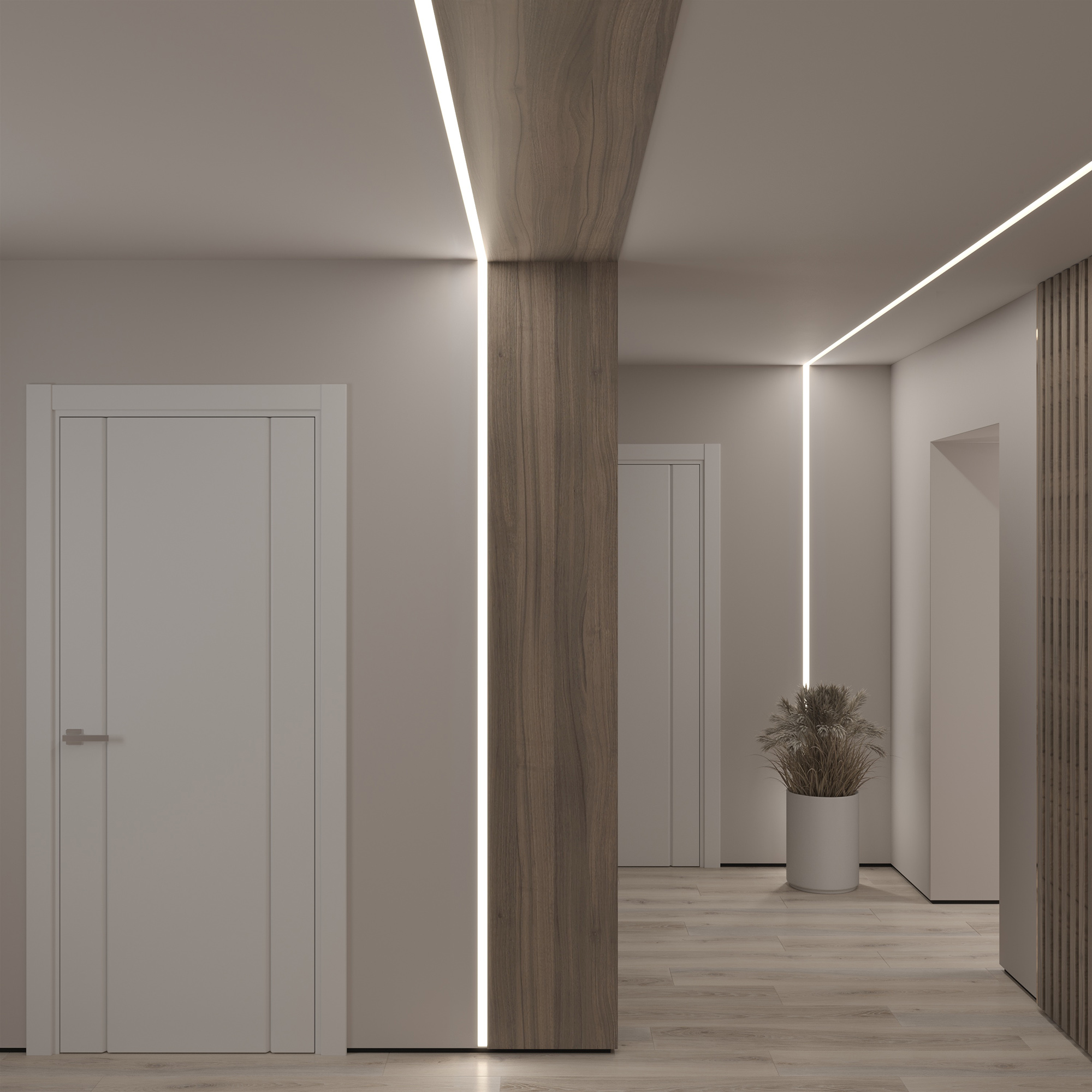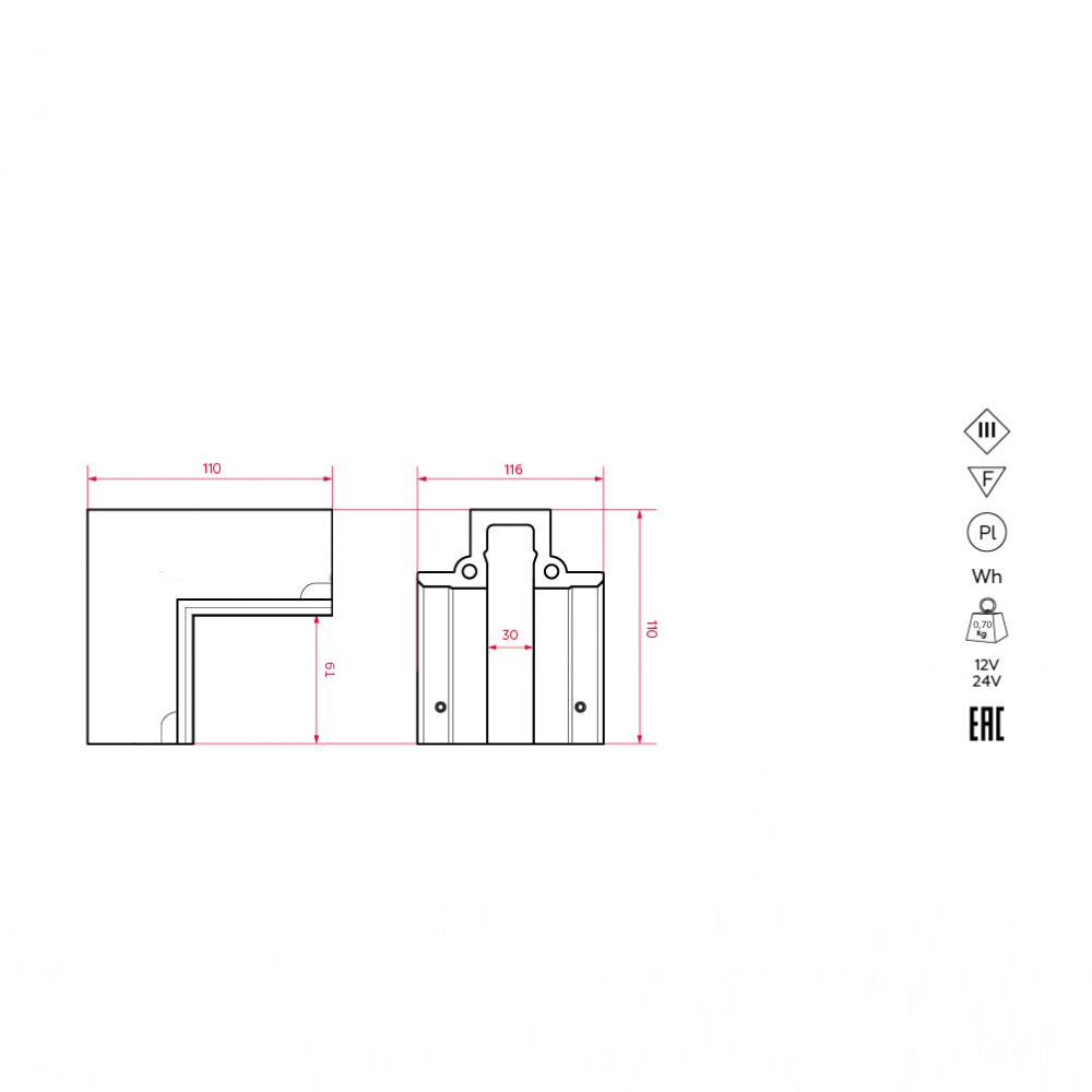 Соединительный элемент (угол 90 стена/стена, стена/потолок) встраиваемой профильной гипсовой системы освещения прямого выхода света SABER 30 для установки в потолках и стенах из гипсокартона.