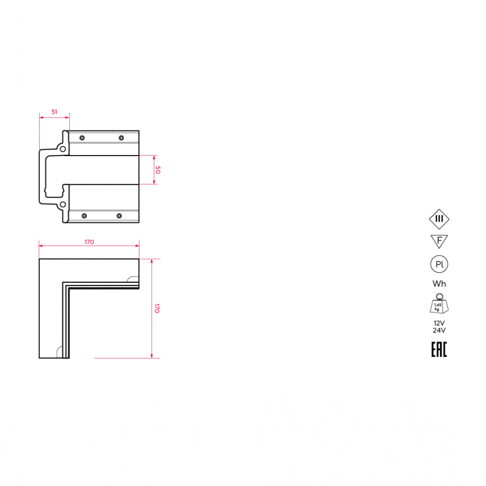 Соединительный элемент (угол 90 стена/стена, стена/потолок) встраиваемой профильной гипсовой системы освещения отражённого света SABER 50 для установки в потолках и стенах из гипсокартона.
