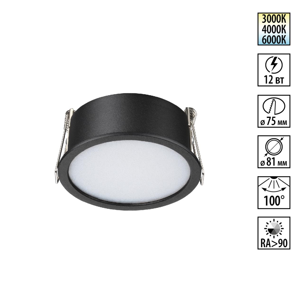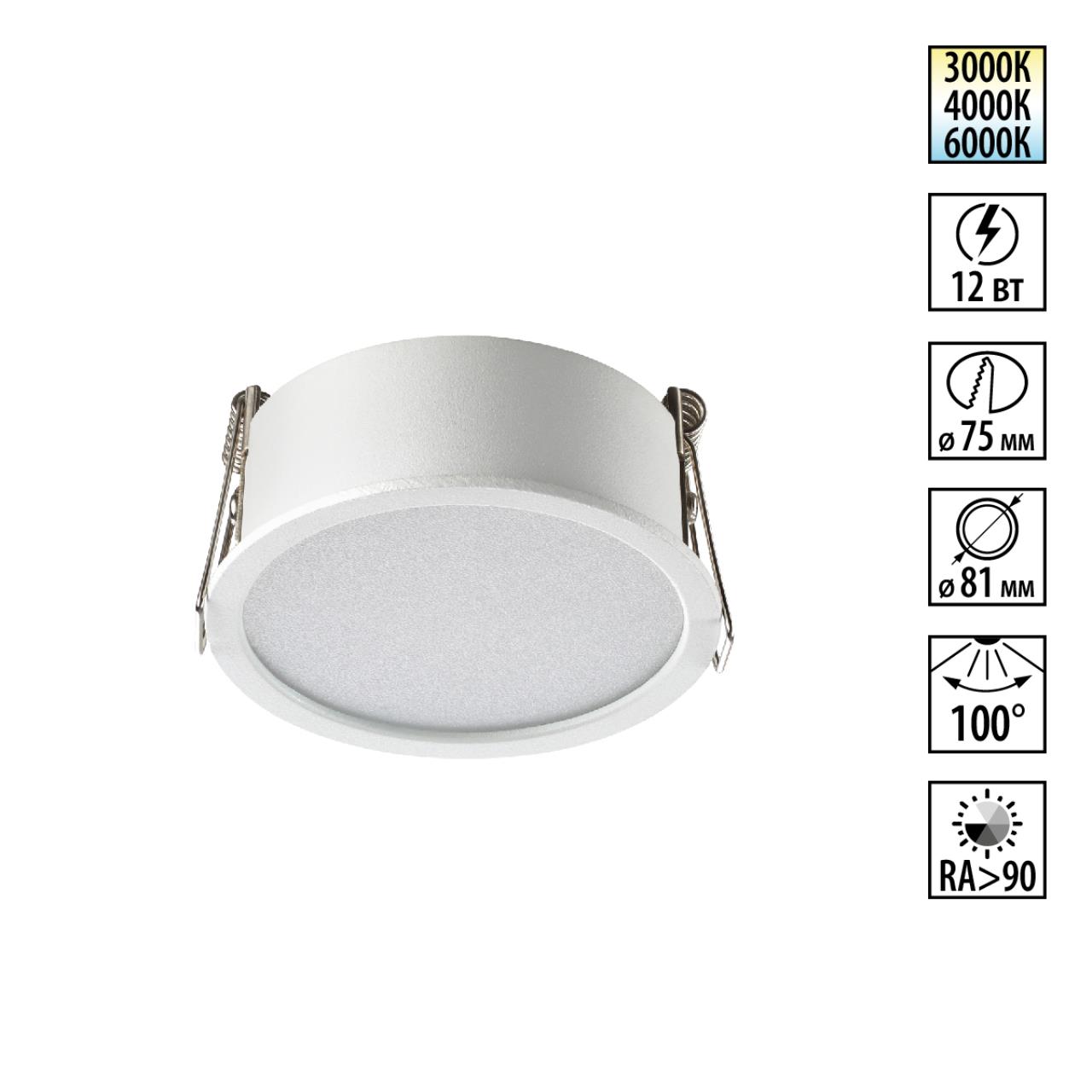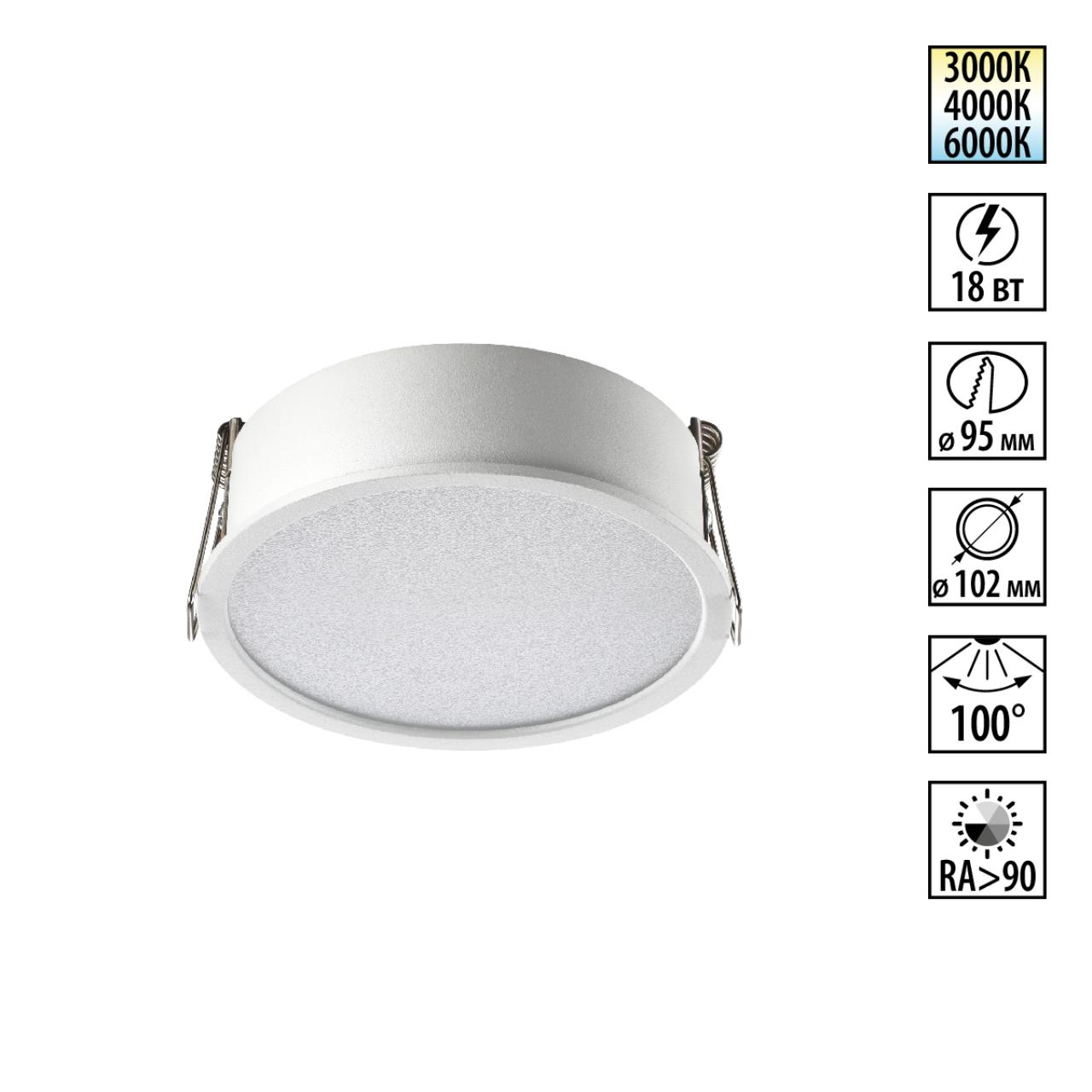 Встраиваемые светодиодные светильники линии LANTE с переключателем цветовой температуры 3000К (теплый белый) -4000К (нейтральный белый) -6000К (холодный белый).