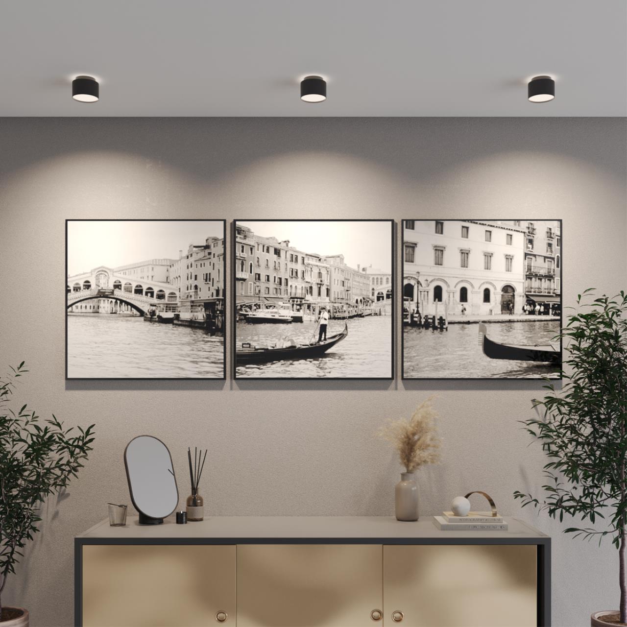Накладные потолочные светильники LIRIO с акриловым рассеивателем и сменной лампой GX53 (лампа в комплект не входит) создают удивительное равновесие между визуальной привлекательностью и практической эффективностью. Доступные в трёх благородных оттенках корпусов — белоснежном, глубоком чёрном и теплом матовом золоте, они прекрасно интегрируются в любые интерьерные решения, будь то домашняя обстановка, современные рабочие зоны, комфортные отели, элитные рестораны или трендовые торговые площадки. Особенное внимание привлекает нежный световой ореол, мягко ложащийся на поверхность потолка, что добавляет помещению ощущение воздушности и объема, одновременно усиливая уникальную атмосферу элегантности и спокойствия.