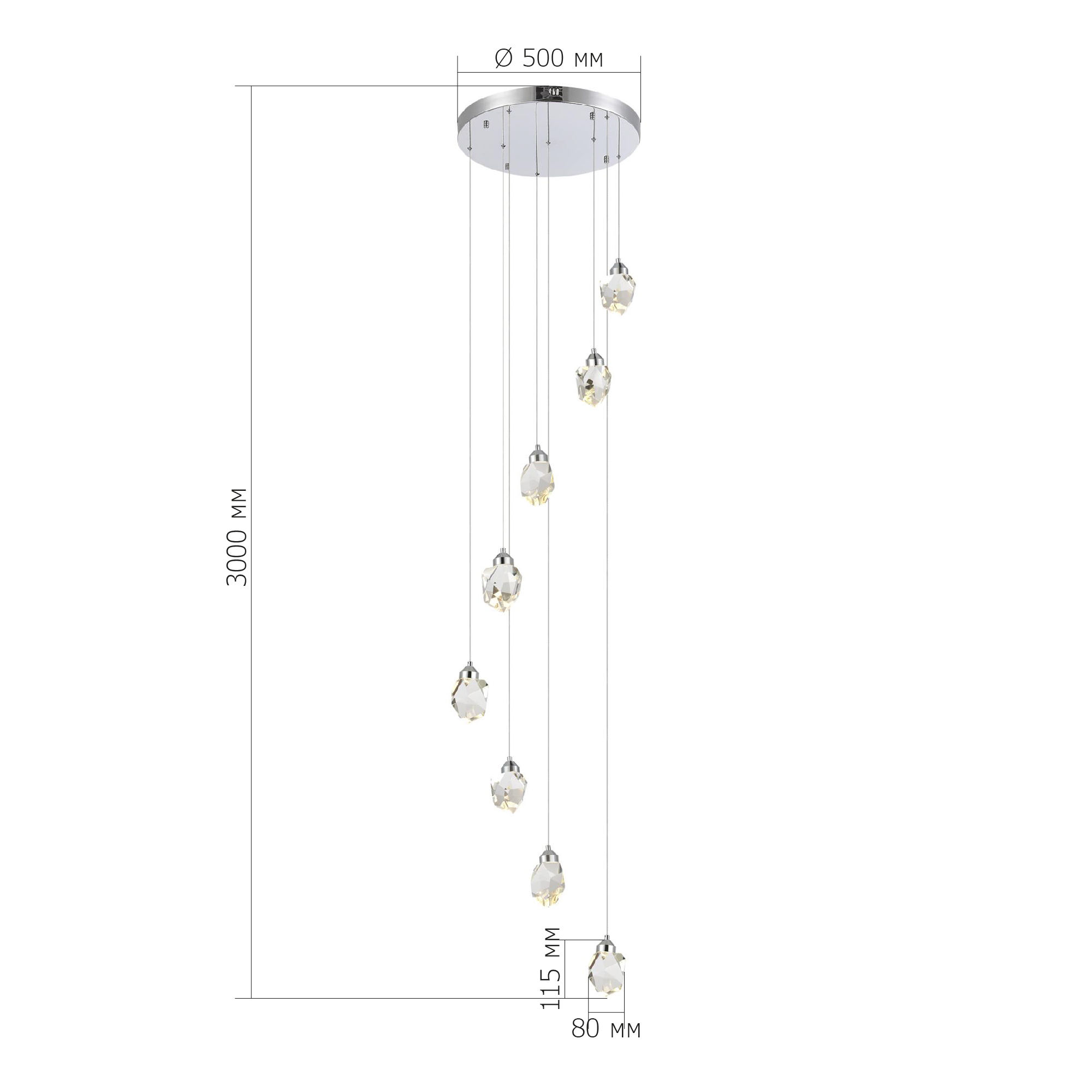 SL6114.103.08 Светильник подвесной ST-Luce Хром/Прозрачный LED 8*3W 3000K CASCATO
