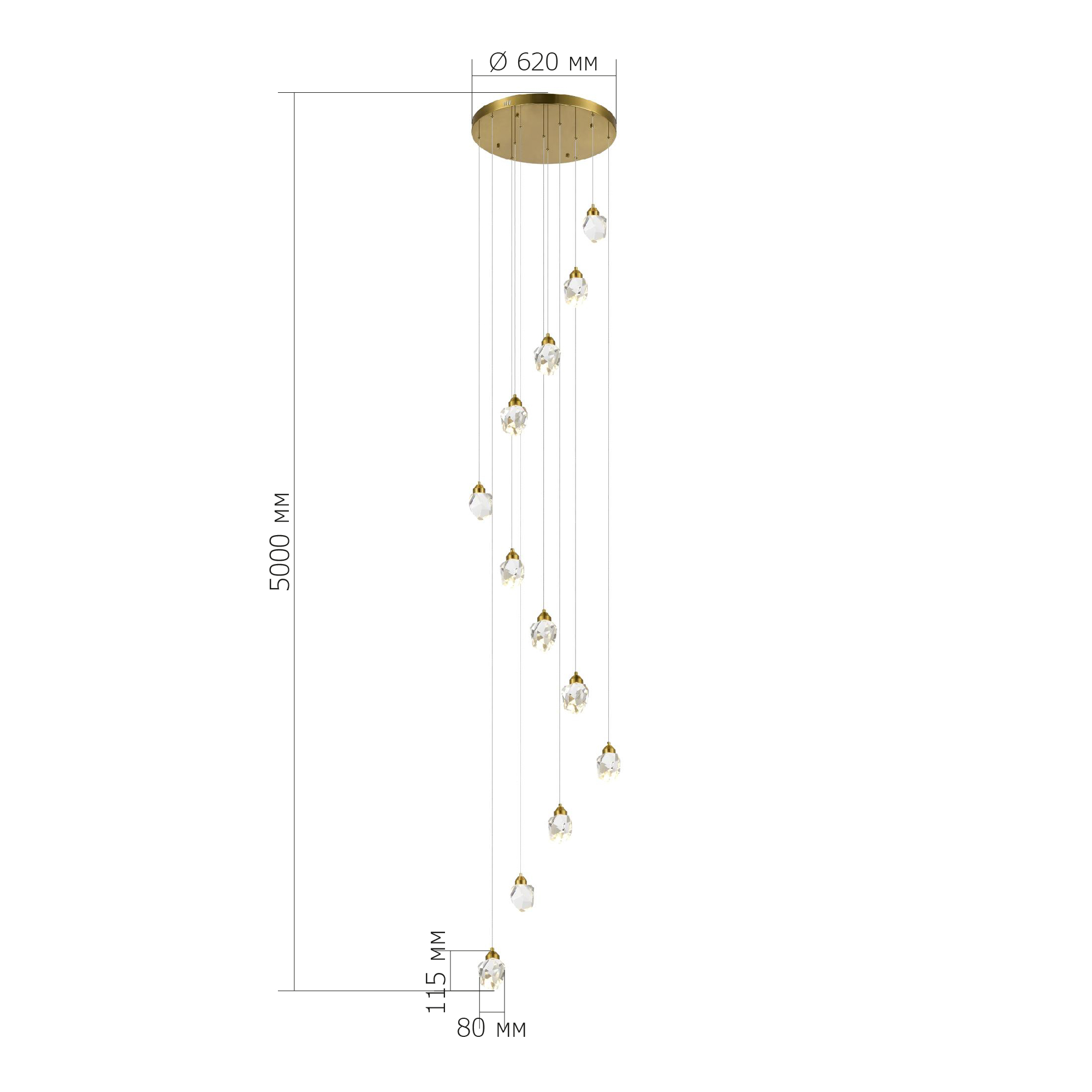 SL6114.203.12 Светильник подвесной ST-Luce Золотистый/Прозрачный LED 12*3W 3000K CASCATO