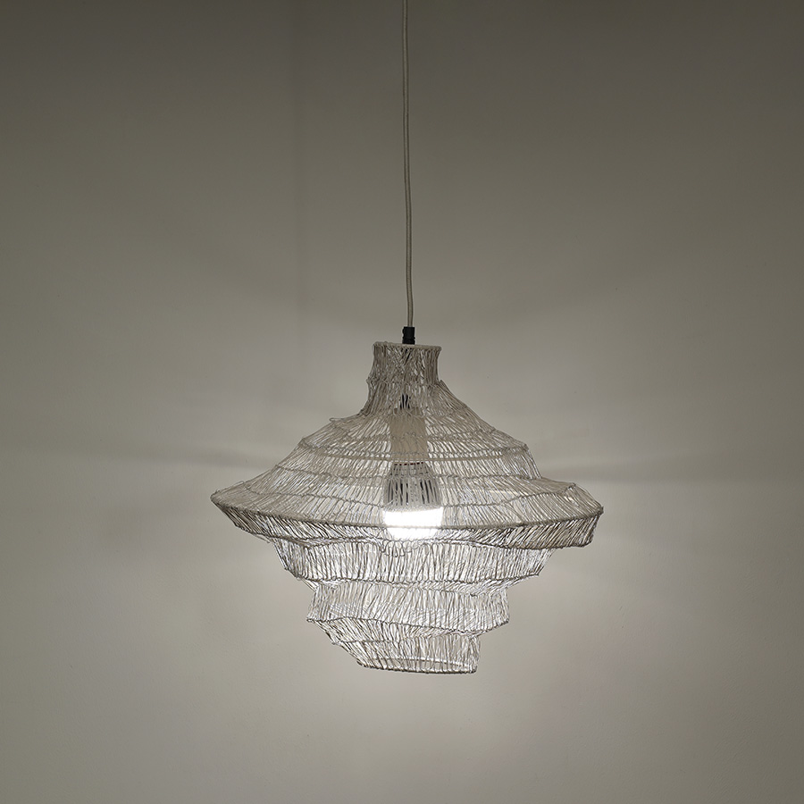 — Светильник с абажуром из железной сетки смотрится необычно и идеально подходит в качестве акцентного элемента.
