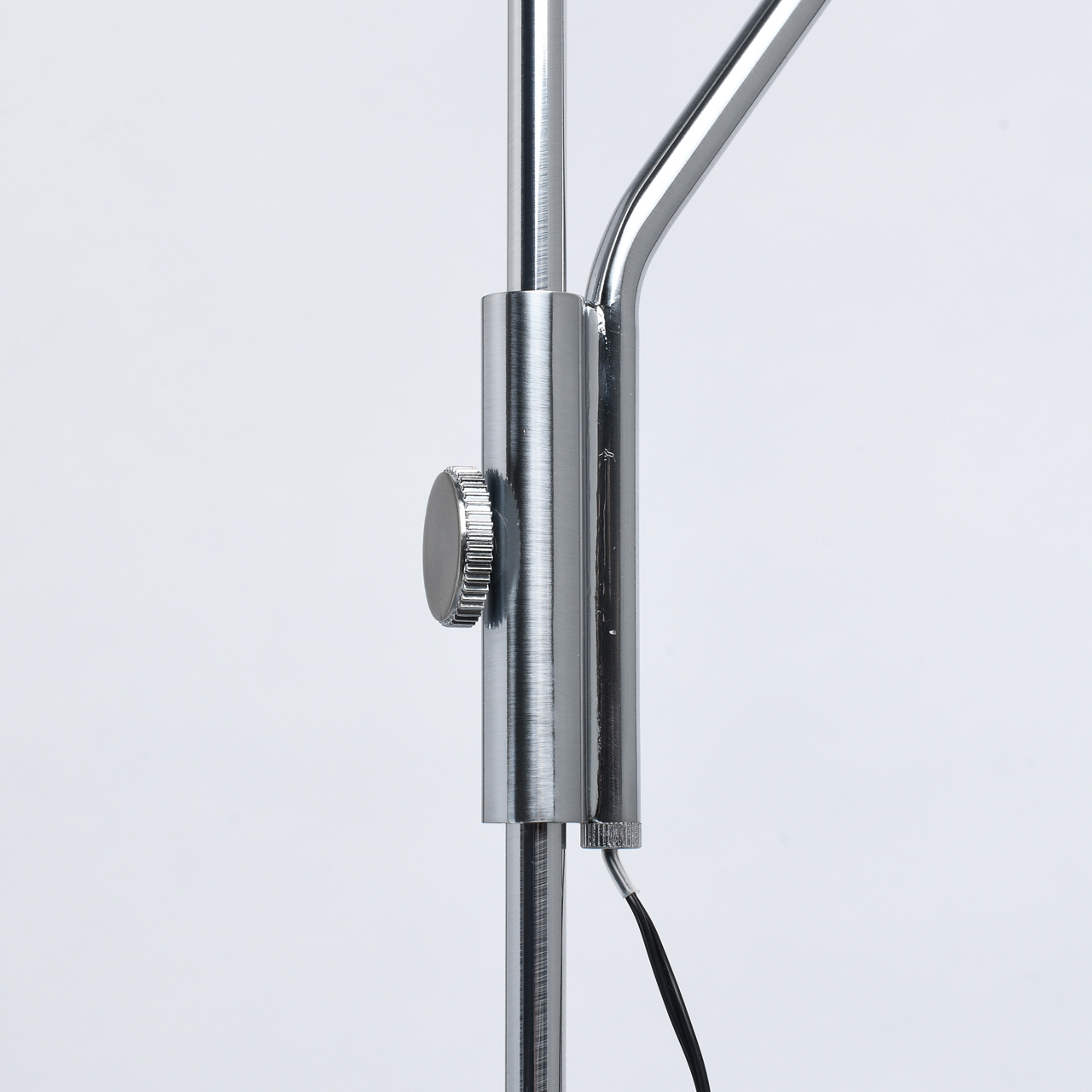Основание светильника выполнено из металла и гальванизировано в цвет хрома. Плафон выполнен из сплава алюминия, обработан по технологии брашинга и гальванизирован в цвет основания. Светодиодный источник света типа SMD Strip закрыт белым матовым акрилом.
