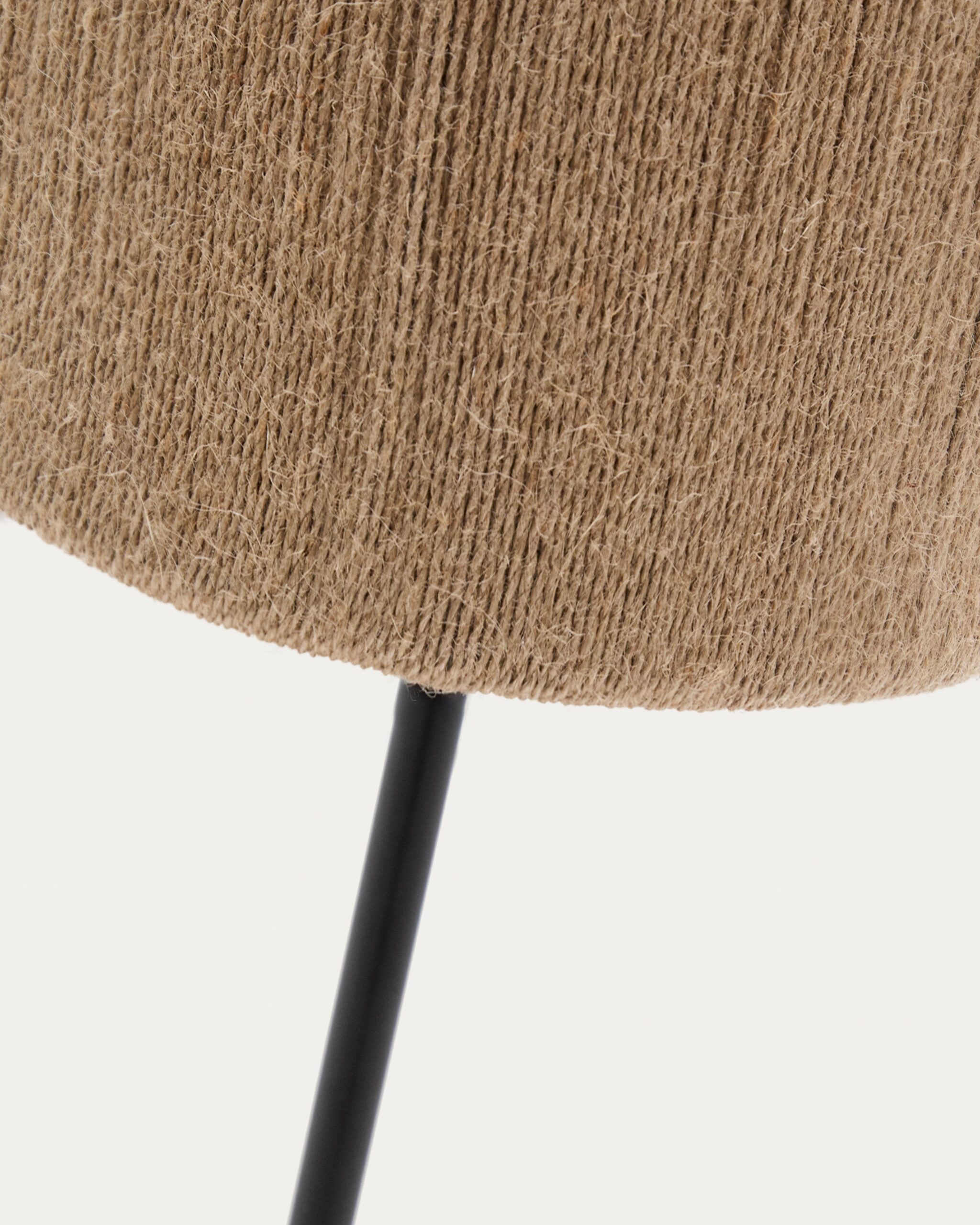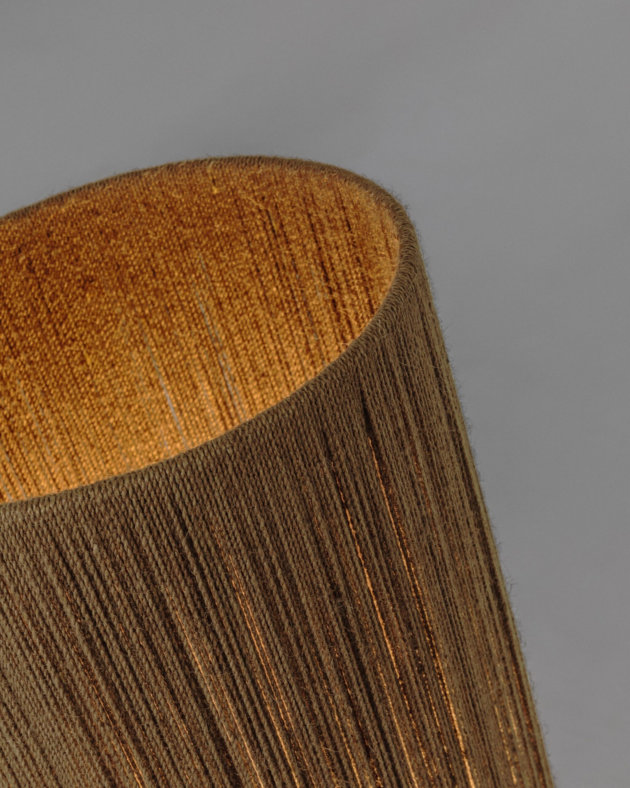 Абажур сплетен вручную из натуральной джутовой веревки коричневого цвета. Он имеет цилиндрическую форму диаметром 30 см и высотой 50,5 см.