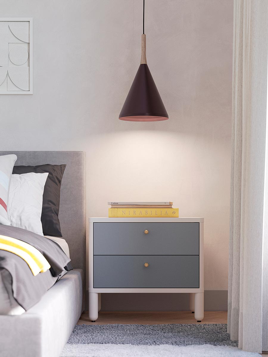 Тумба прикроватная Hordur воплощает в себе основные преимущества скандинавского дизайна – простые, элегантные формы и высокую функциональность. Модель с двумя вместительными выдвижными ящиками позволяет удобно разместить подручные предметы и обеспечить к ним быстрый доступ в любой момент. Благодаря фасаду из окрашенной ЛМДФ мебель простая в уходе, долго сохраняет привлекательный вид. Выигрышно дополняют силуэт элегантные ножки из массива бука и минималистичные ручки из металла. Такая тумба прекрасно вписывается в большинство популярных интерьерных стилей: сканди, минимализм, лофт, эклектика, фьюжн, поп-арт и др.