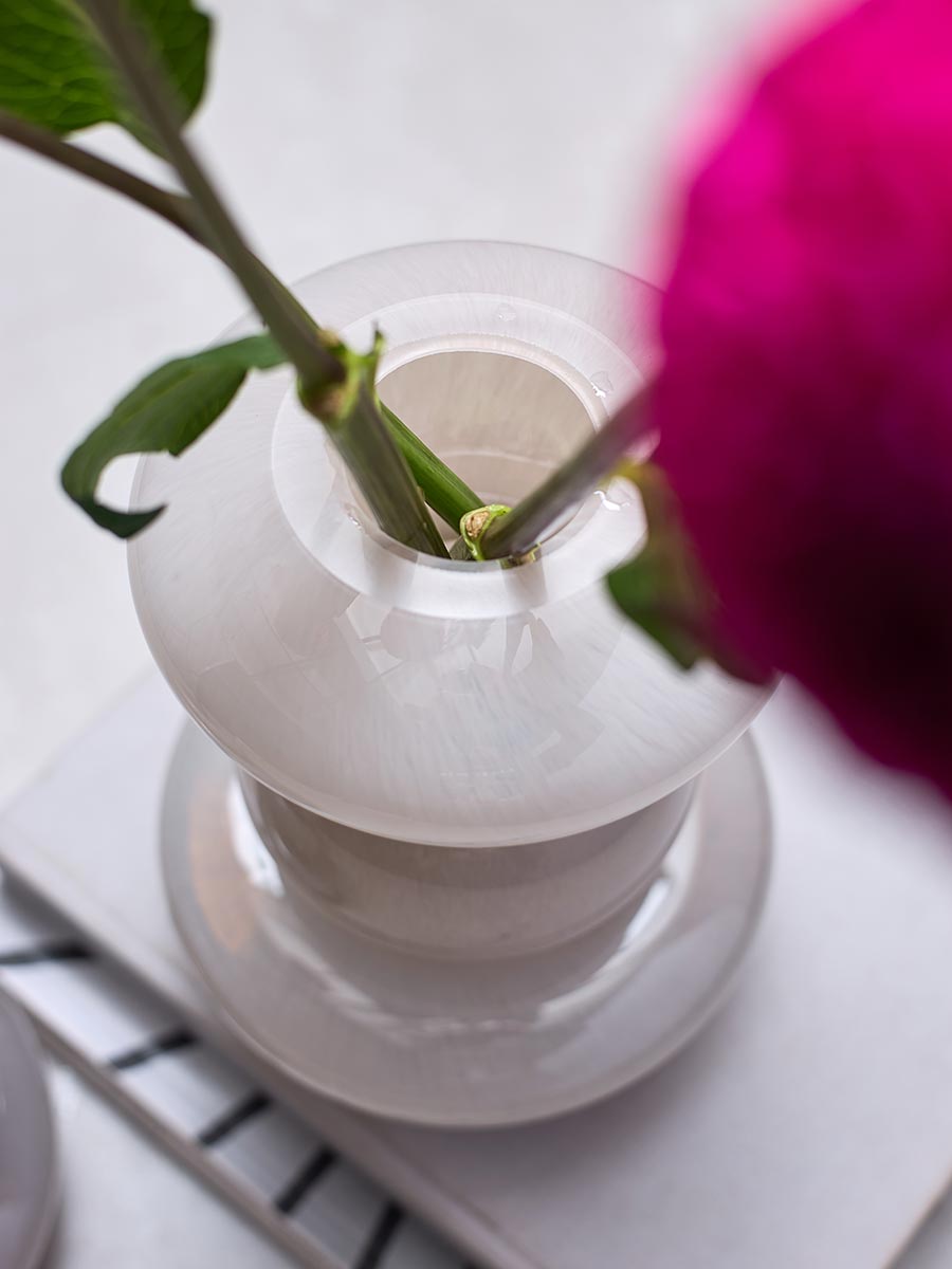 Утонченные формы и многогранная красота жемчужно-серых тонов делают вазу Riverstone идеальным дополнением стильного пространства, где каждая деталь имеет значение. В ее дизайне нет ничего лишнего – только чистые линии, игра форм и ощущение вневременной элегантности.