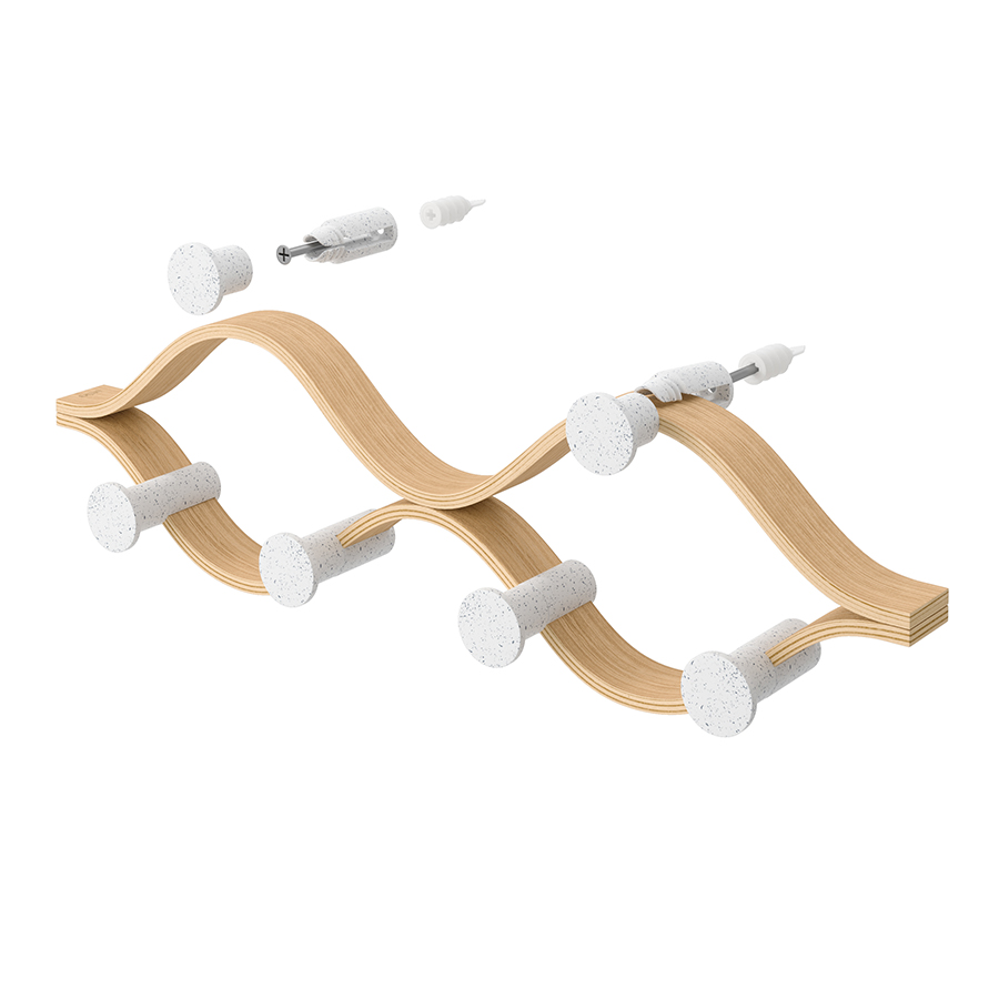 Вешалка настенная крючков натуральное дерево/белая VAMVIDNEE VV978598