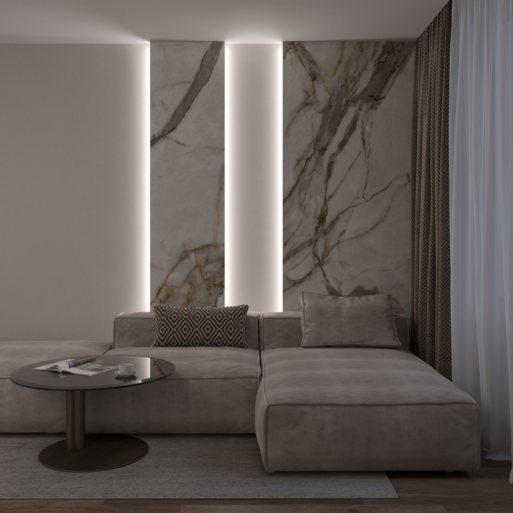 Линейный элемент встраиваемой профильной гипсовой системы освещения отражённого света SABER 50С для установки в потолках и стенах из гипсокартона.