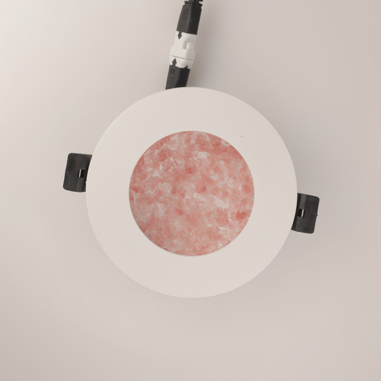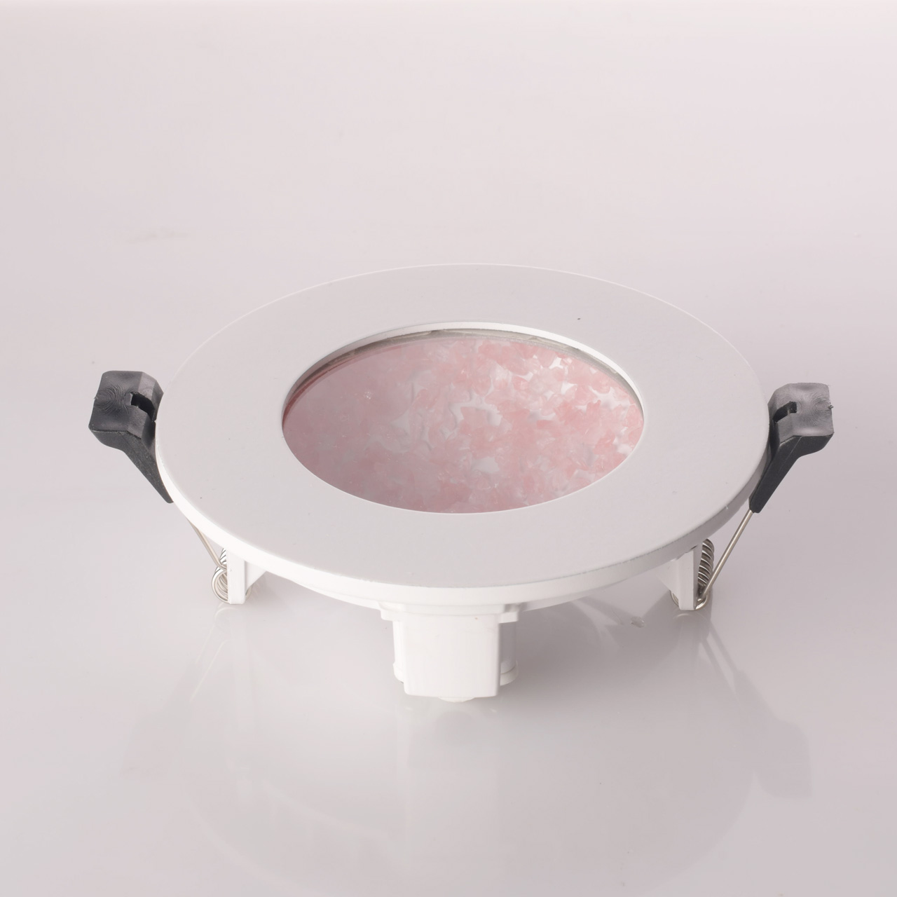 Светодиодные источники света типа SMD Strip закрыты прозрачным стеклом. Цветная стеклянная крошка.