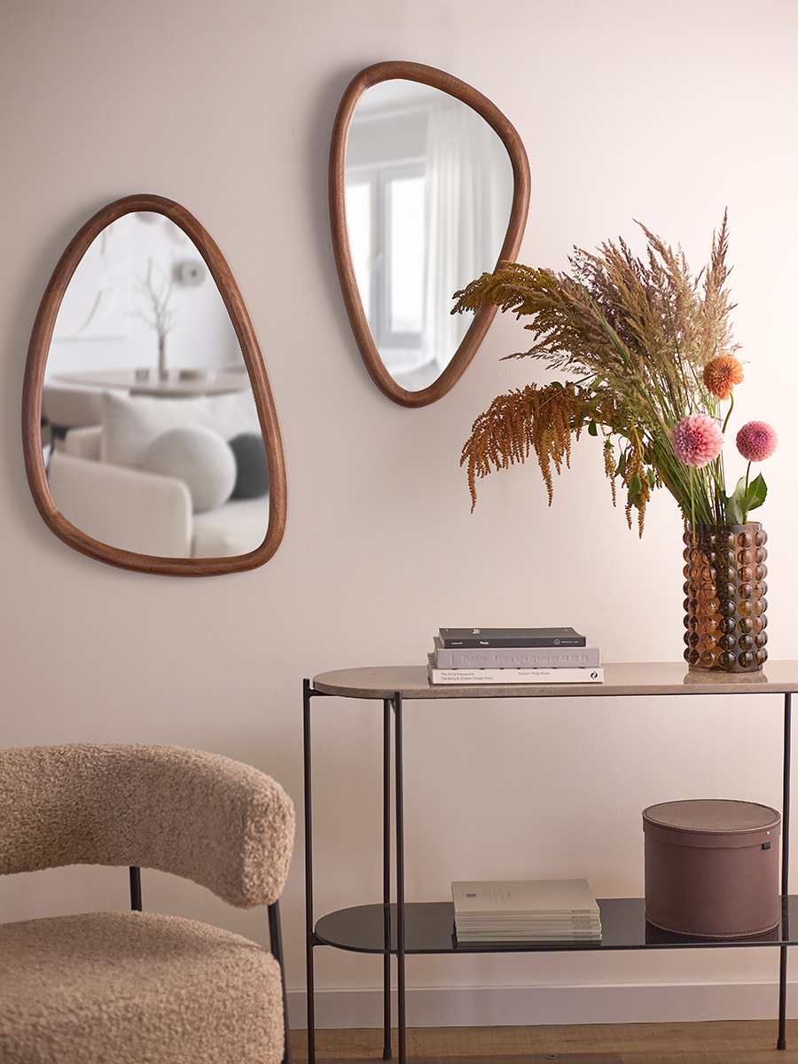 Зеркало настенное Torhill с рамой из древесины манго – прекрасный способ оживить пространство, а также добавить в интерьер ощущение гармонии и природной элегантности.